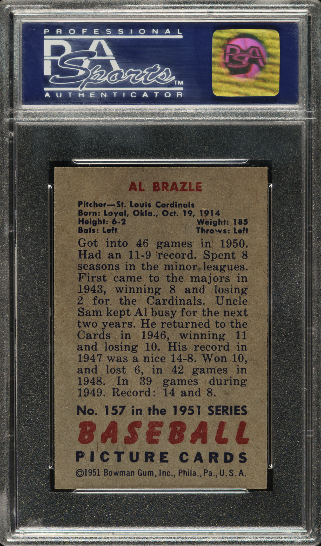 Lot # 2399: 1951 Bowman #157 Al Brazle PSA NM-MT 8