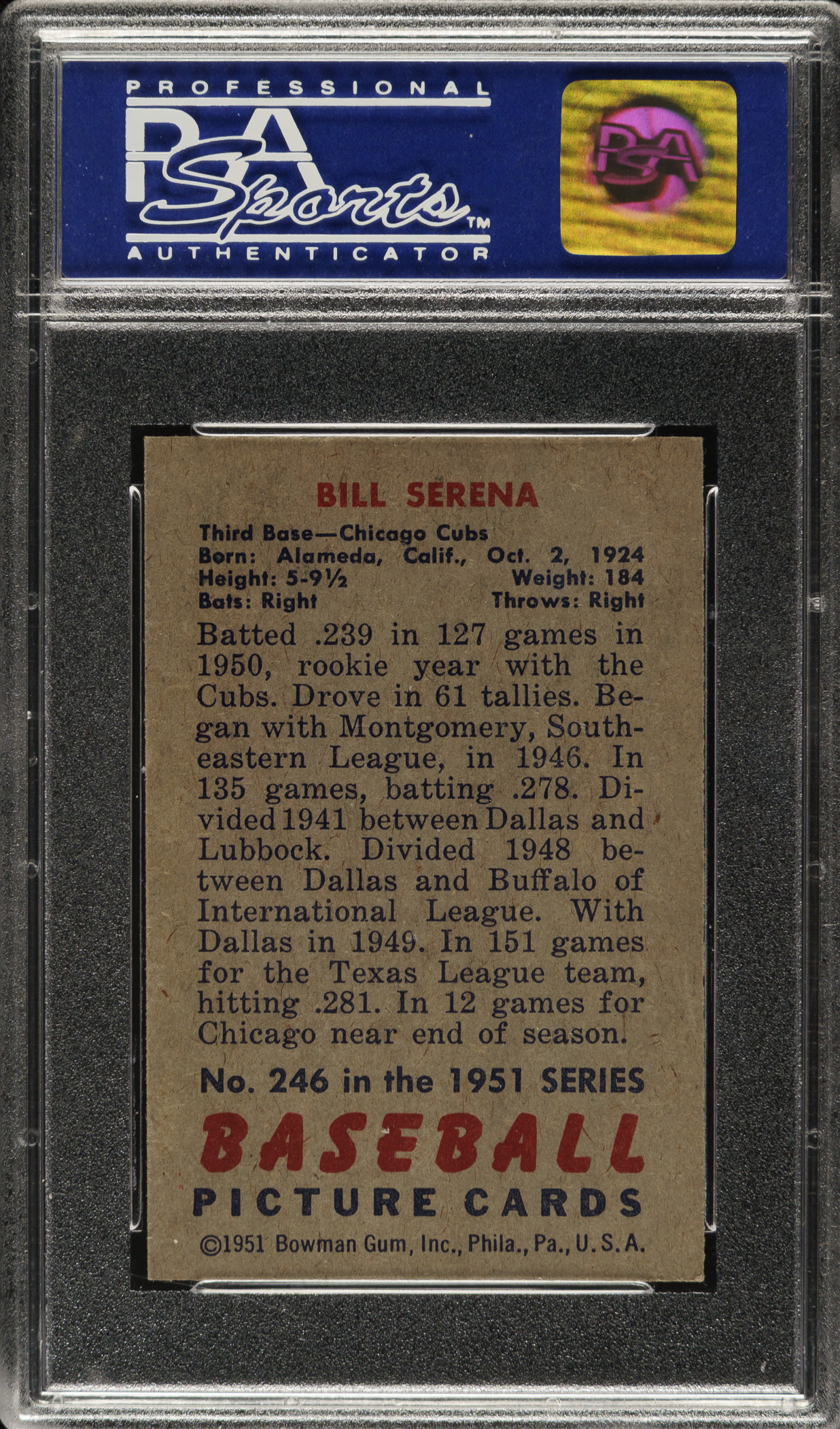 Lot # 2453: 1951 Bowman #246 Bill Serena PSA NM-MT 8
