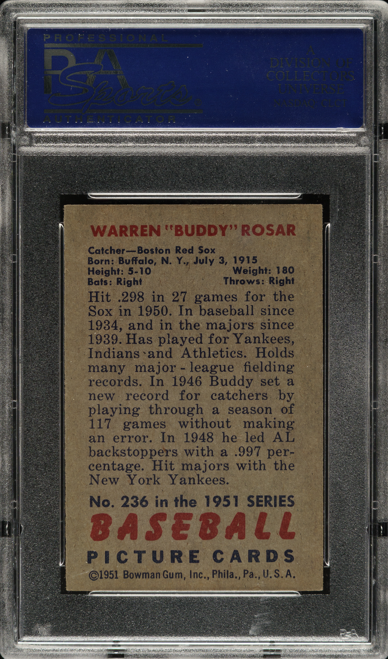Lot # 2447: 1951 Bowman #236 Warren Rosar PSA NM-MT 8