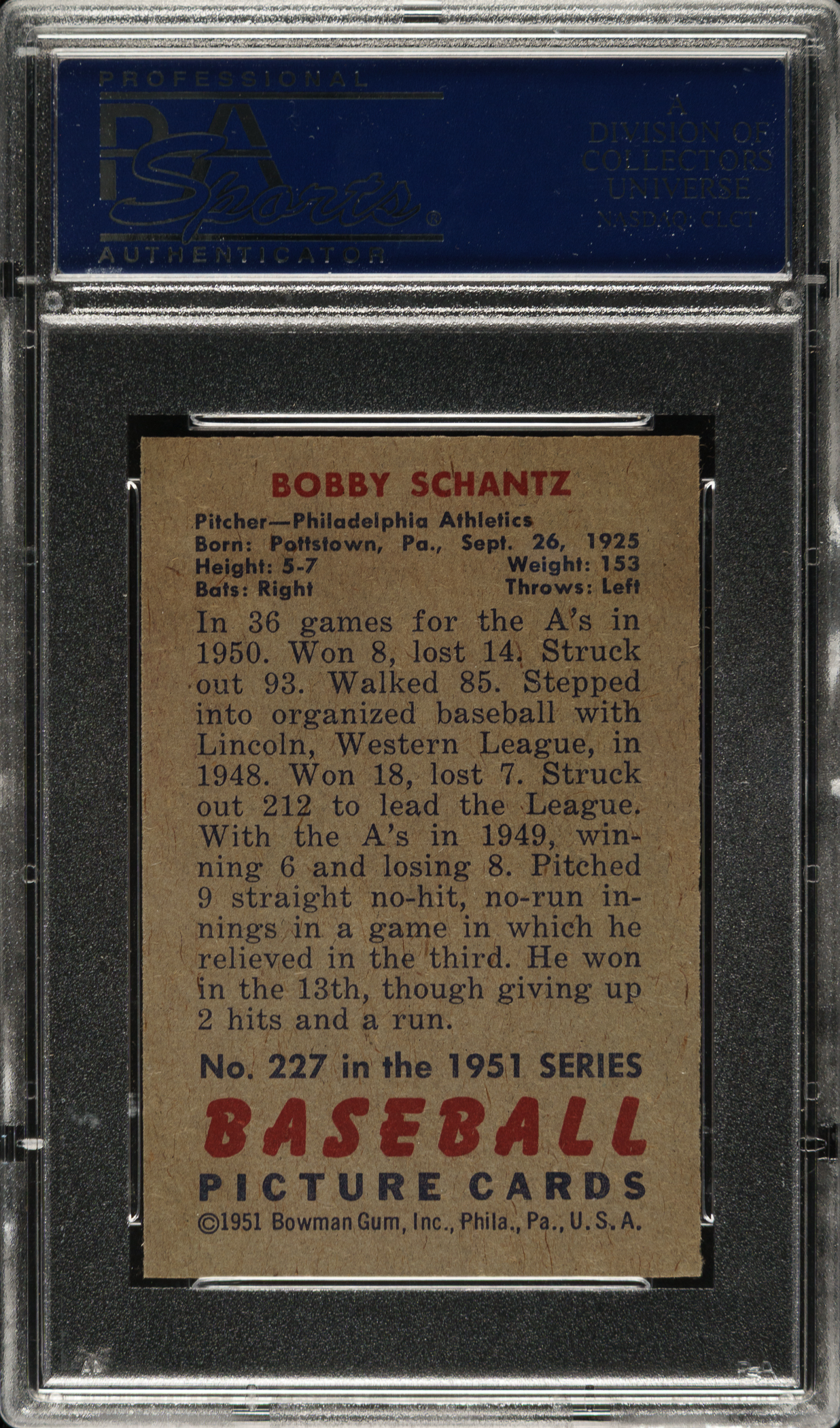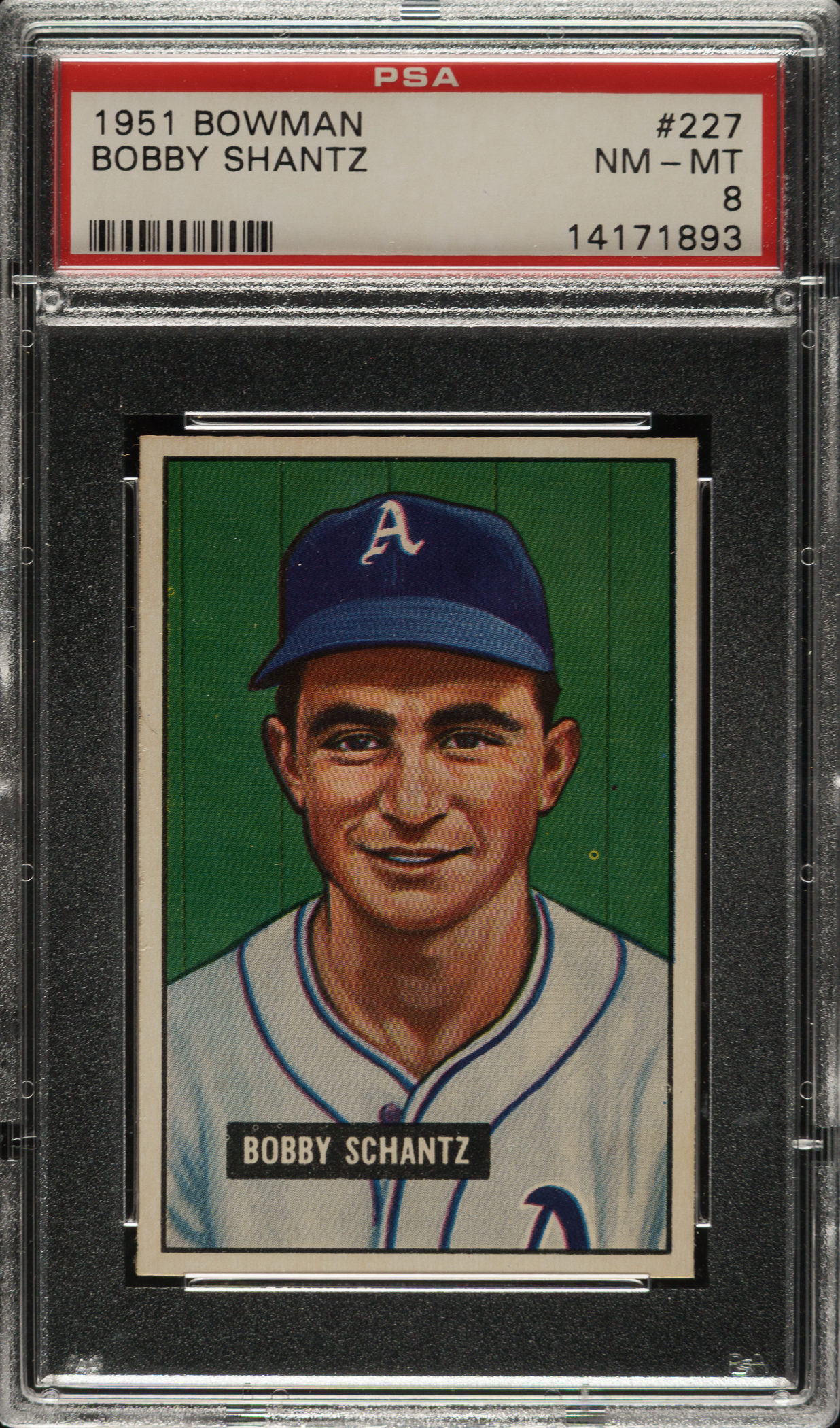 Lot # 2439: 1951 Bowman #227 Bobby Shantz PSA NM-MT 8