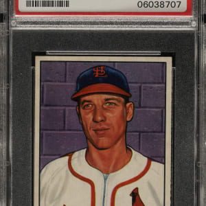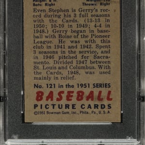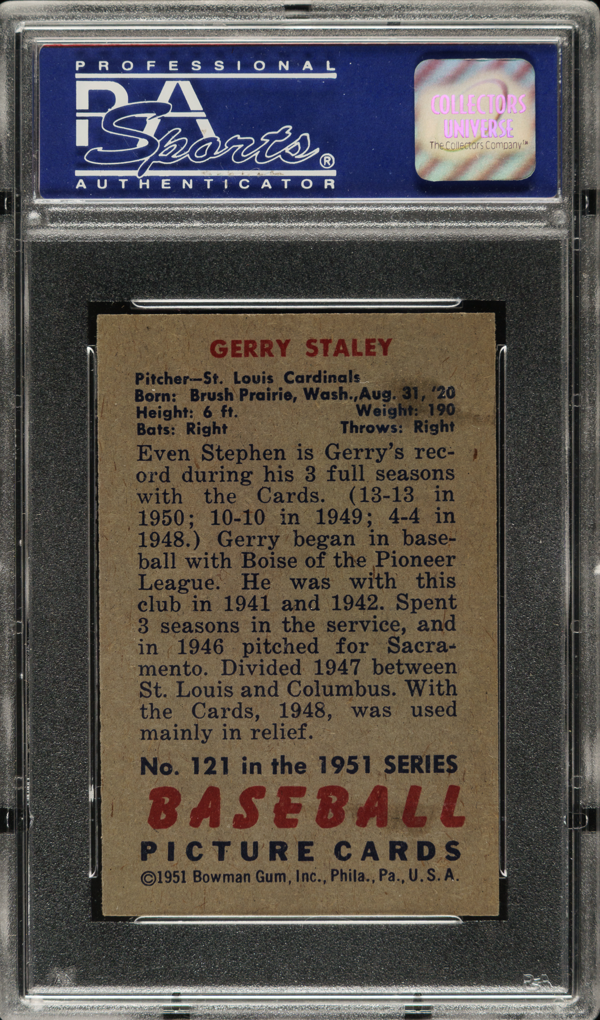 Lot # 2378: 1951 Bowman #121 Gerry Staley PSA NM-MT 8