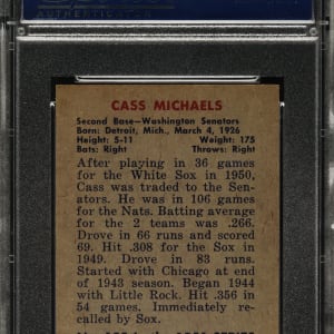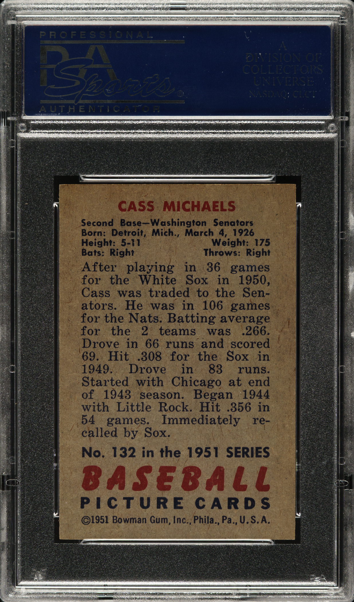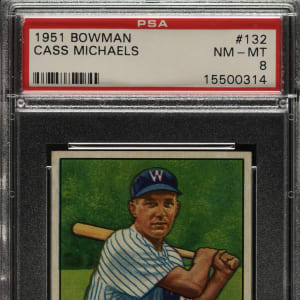 Lot # 2383: 1951 Bowman #132 Cass Michaels PSA NM-MT 8