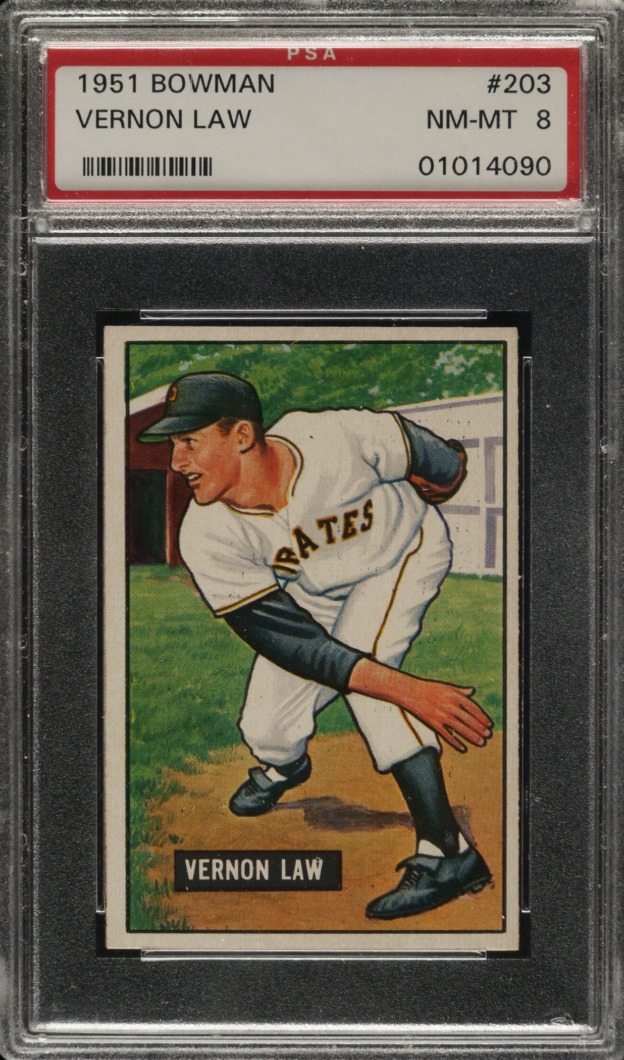 Lot # 2428: 1951 Bowman #203 Vernon Law PSA NM-MT 8