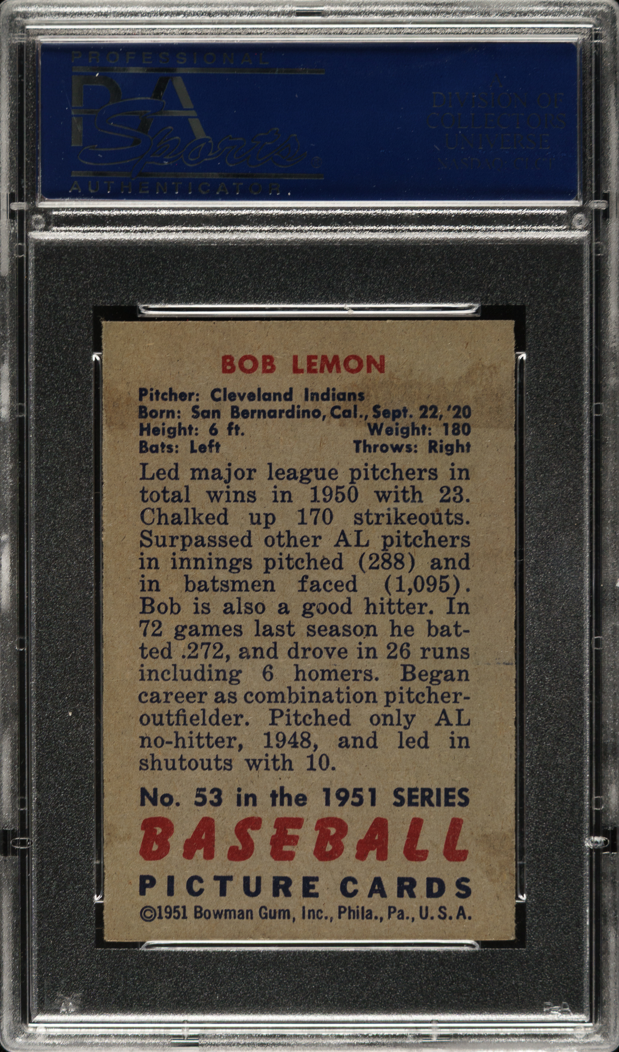 Graded EX-MT 6 by PSA. Cleveland Indians Hall of Famer Bob Lemon.