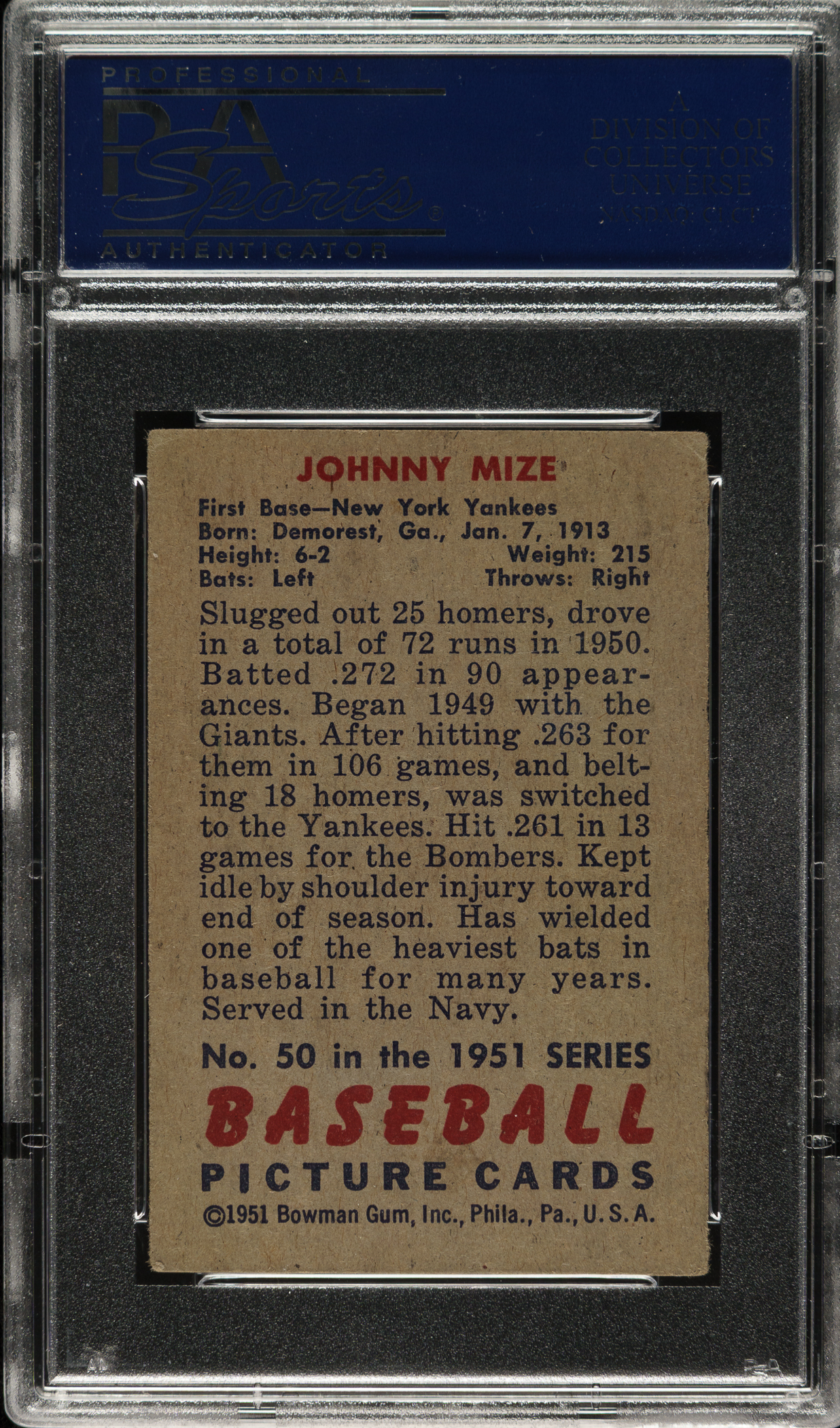 Graded VG-EX 4 by PSA. New York Yankees Hall of Famer Johnny Mize.