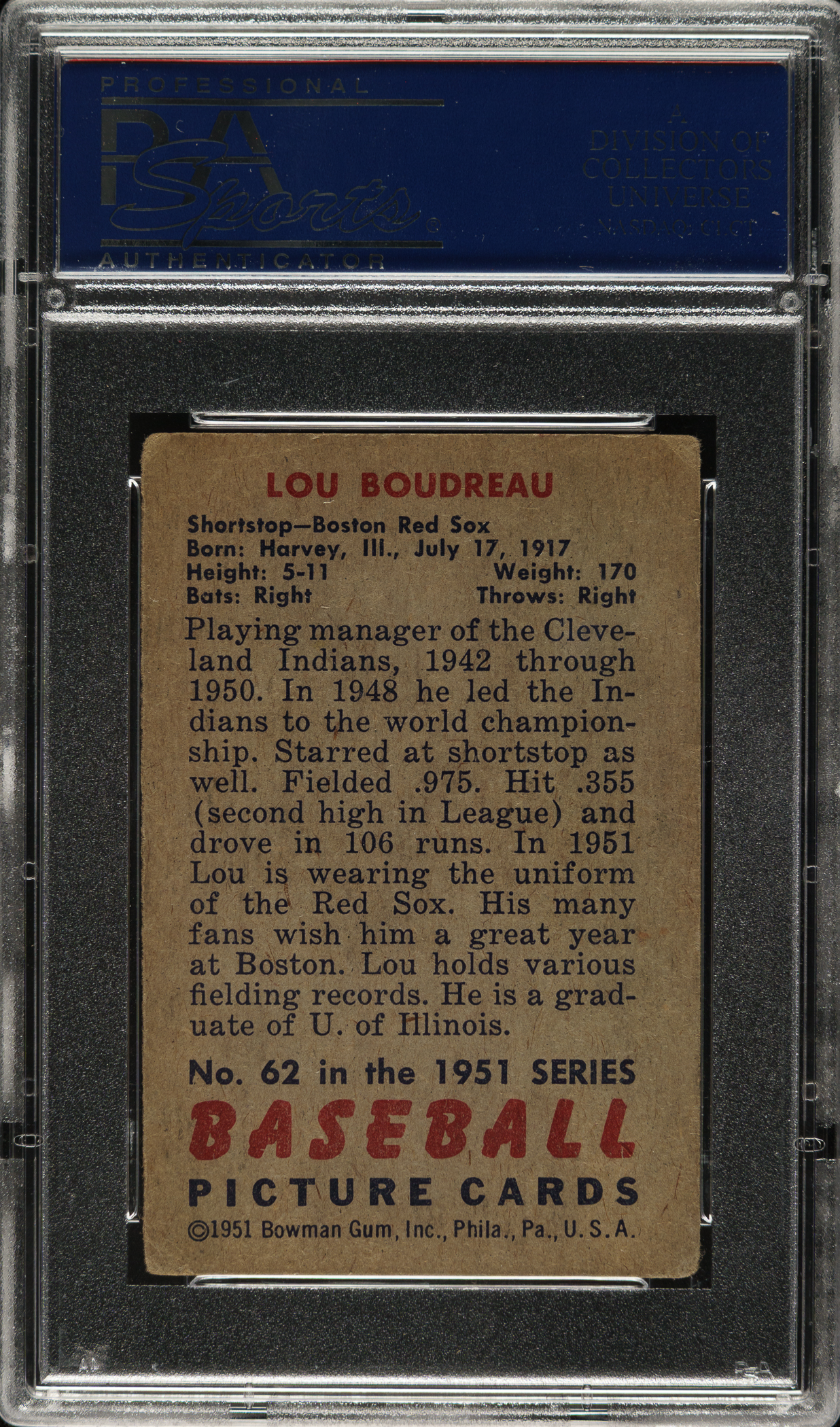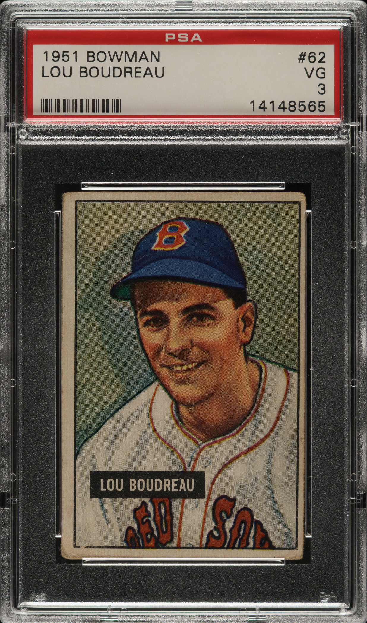 Graded VG 3 by PSA. Cleveland Indians Hall of Famer Lou Boudreau.
