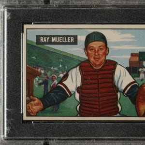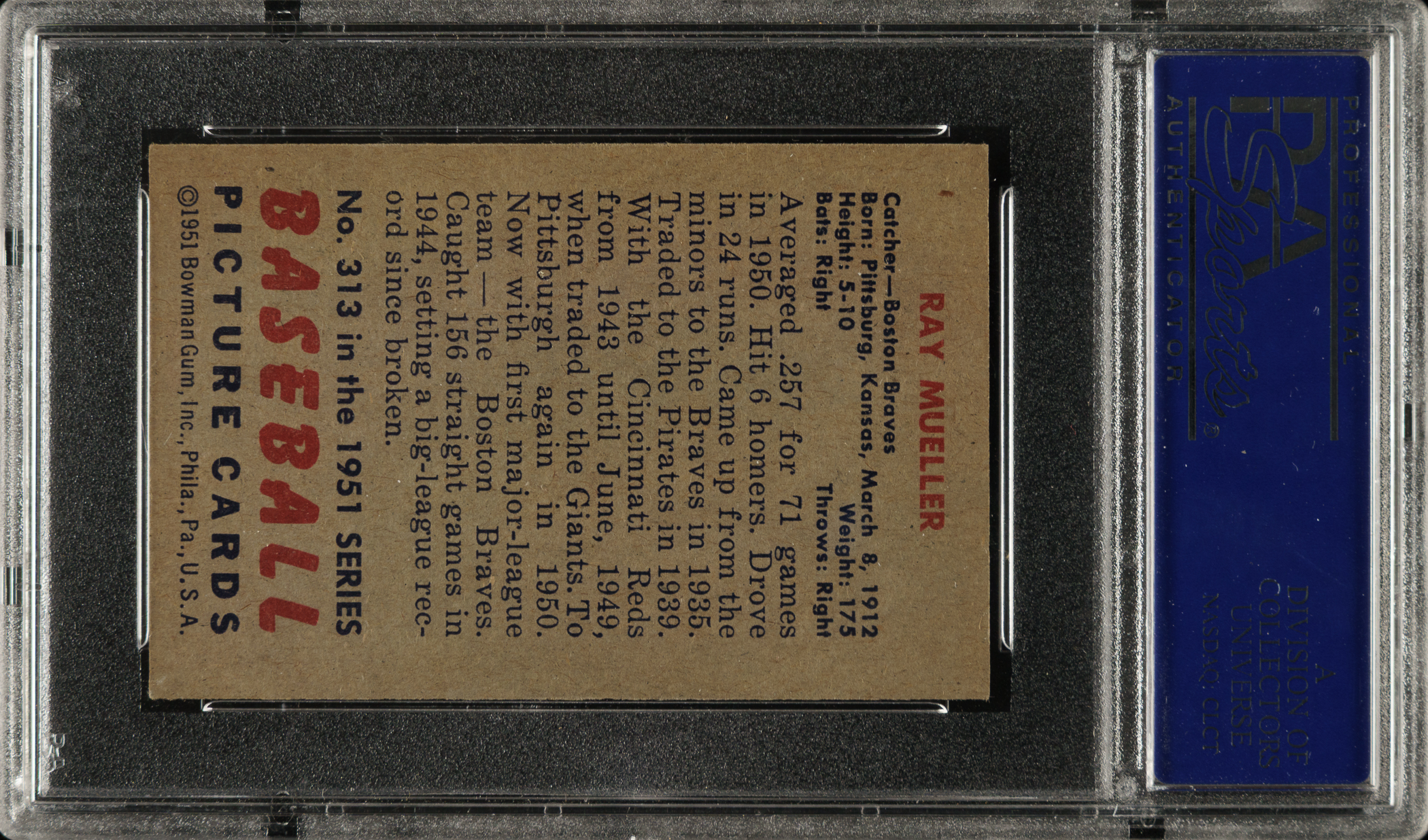 Lot # 2471: 1951 Bowman #313 Ray Mueller PSA NM 7