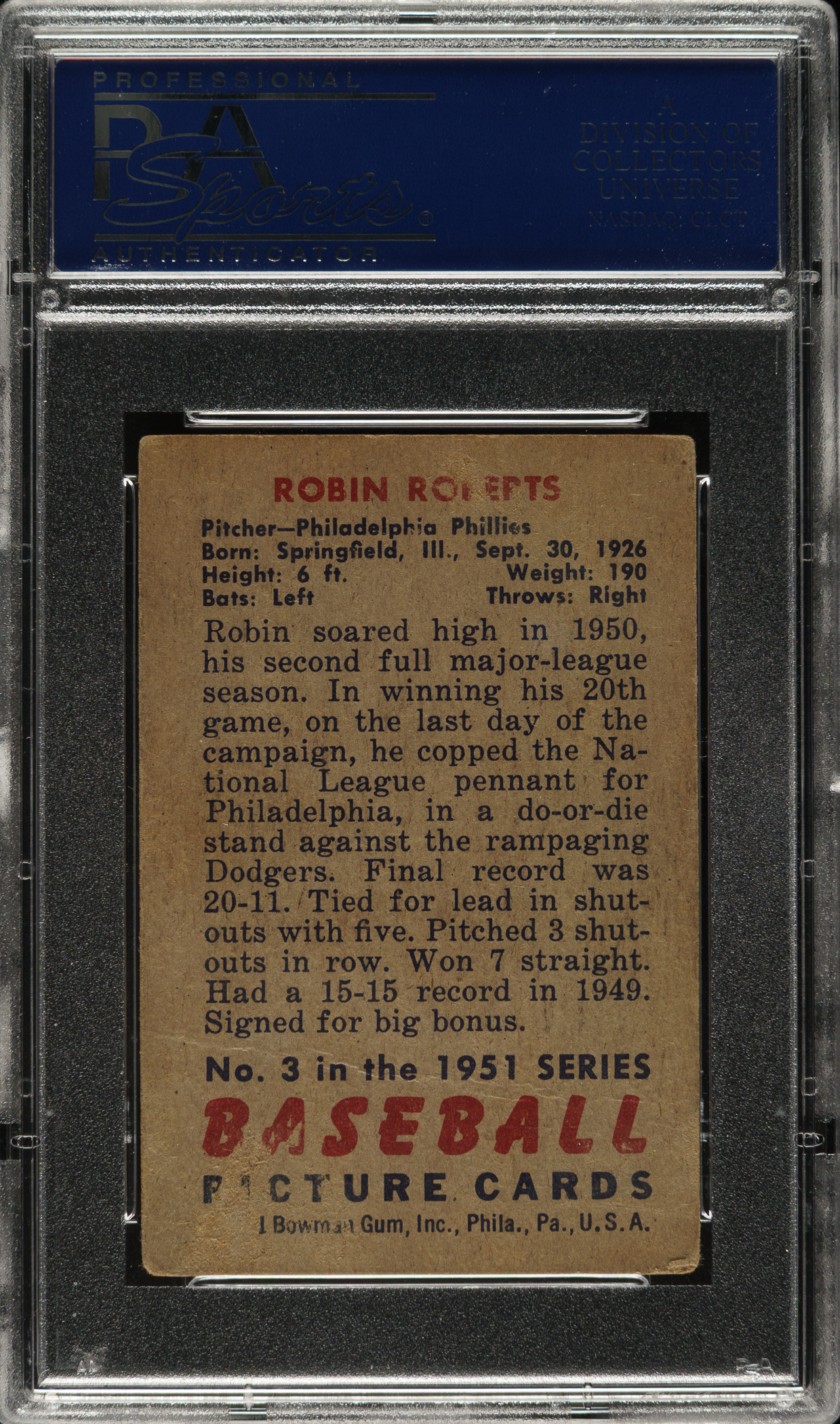 Graded GOOD 2 by PSA. Philadelphia Phillies Hall of Famer Robin Roberts.