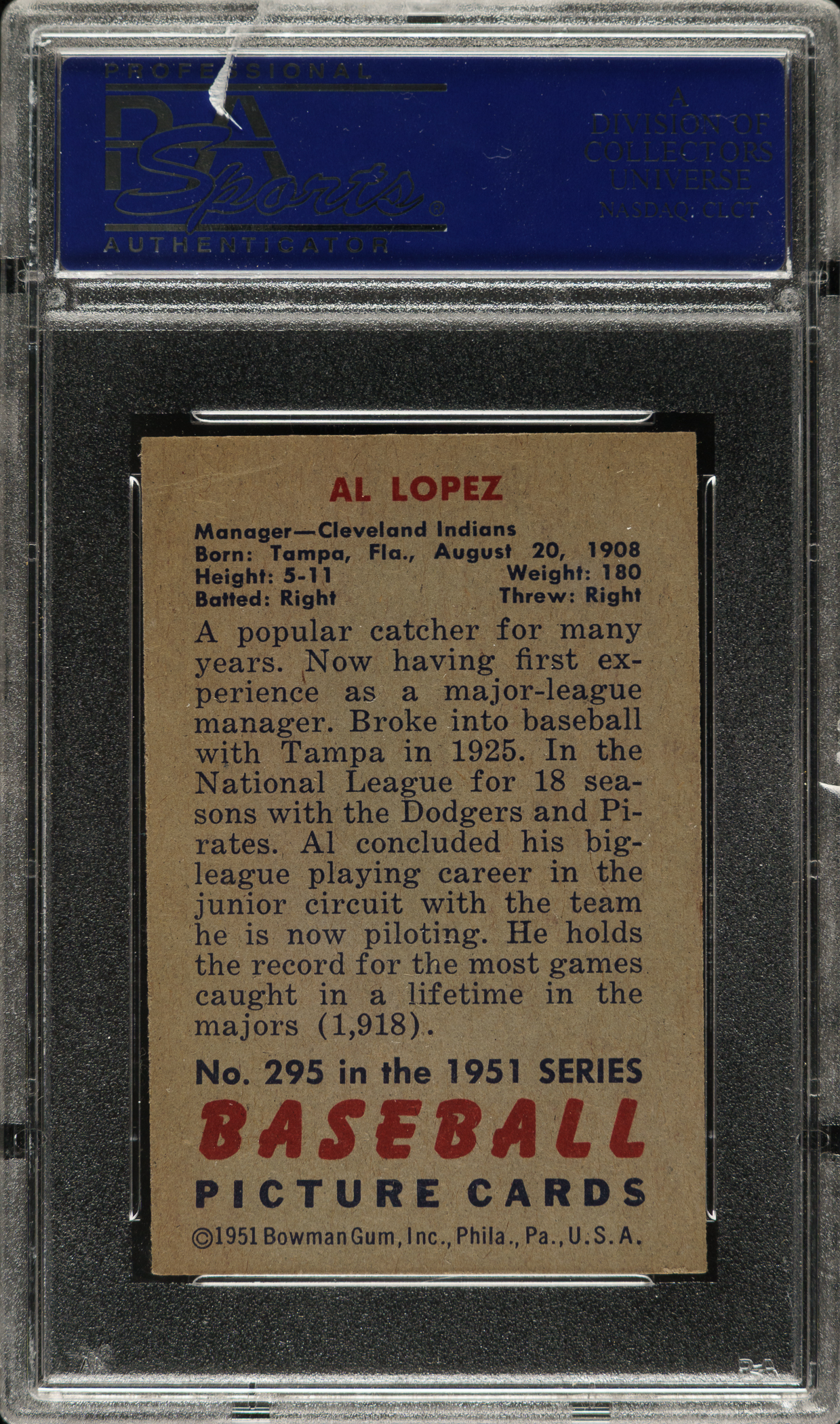 Graded EX 5 by PSA. Cleveland Indians Hall of Famer Al Lopez.