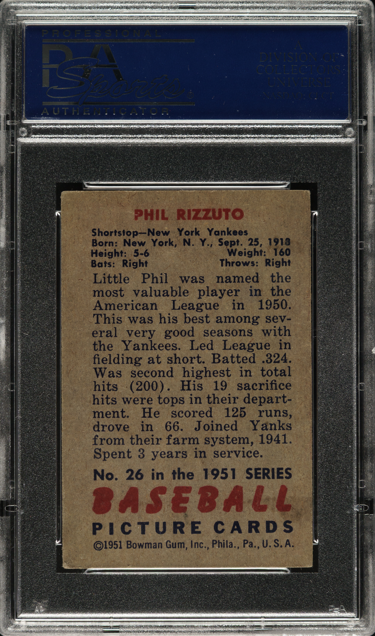 Graded EX 5 by PSA. New York Yankees Hall of Famer Phil Rizzuto.