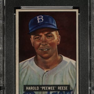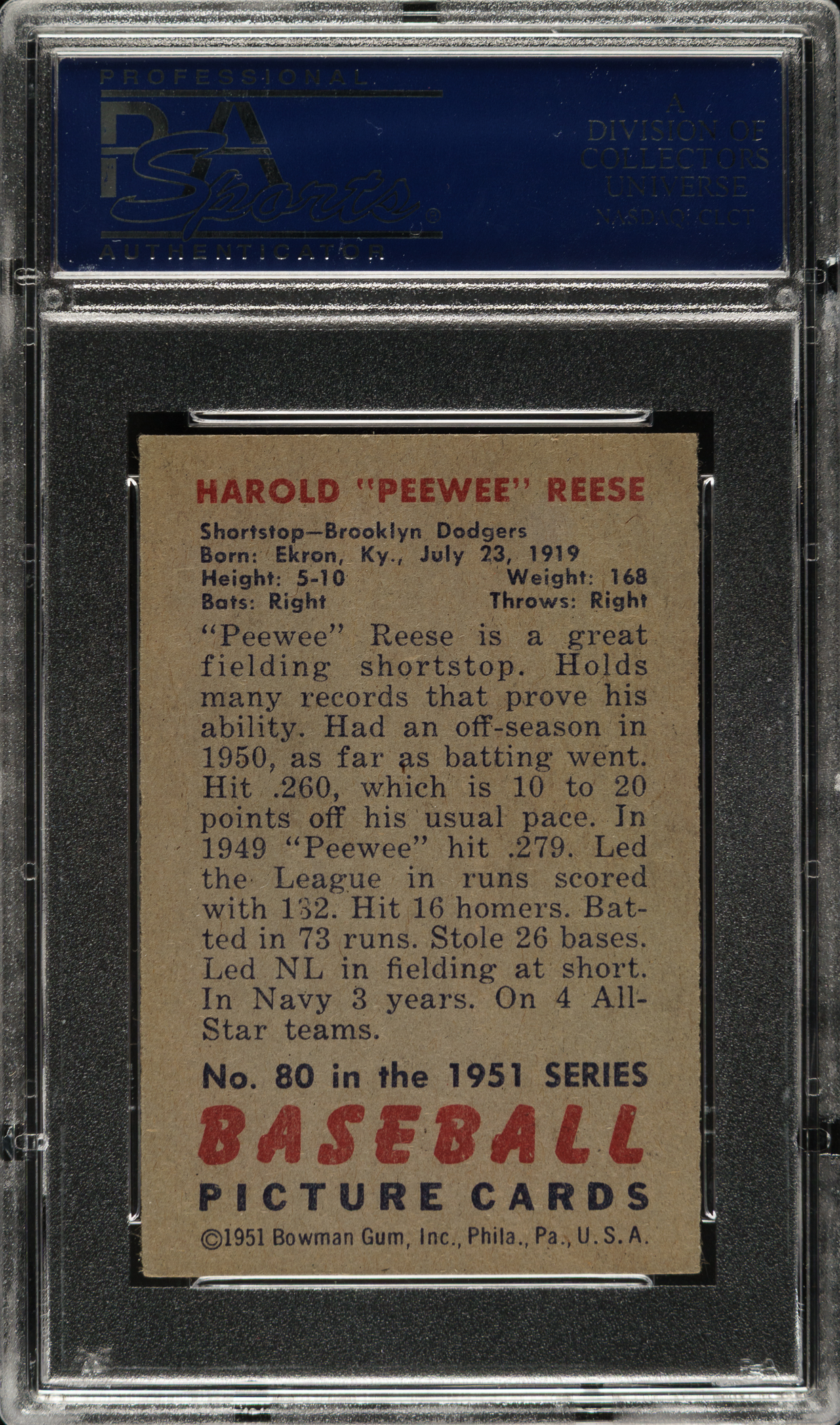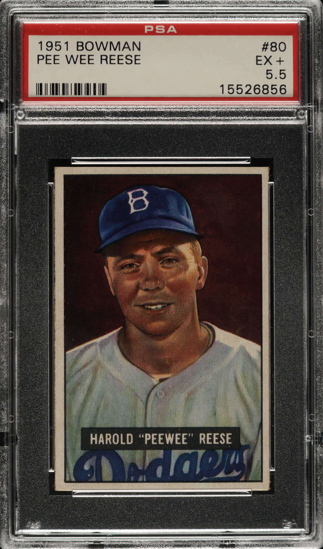 Graded EX+ 5.5 by PSA. Brooklyn Dodgers Hall of Famer Pee Wee Reese.