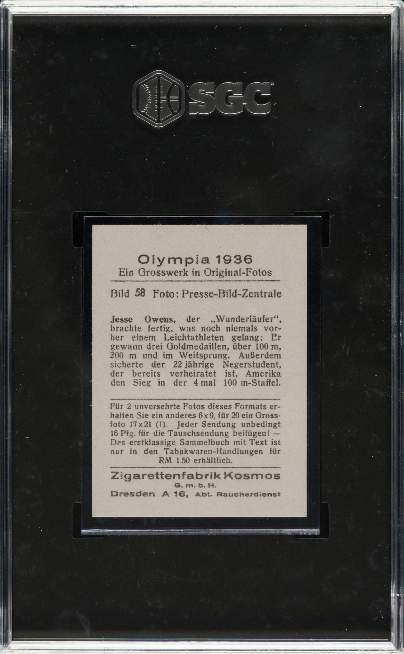 Graded NM 7 by SGC. Olympian Jesse Owens.