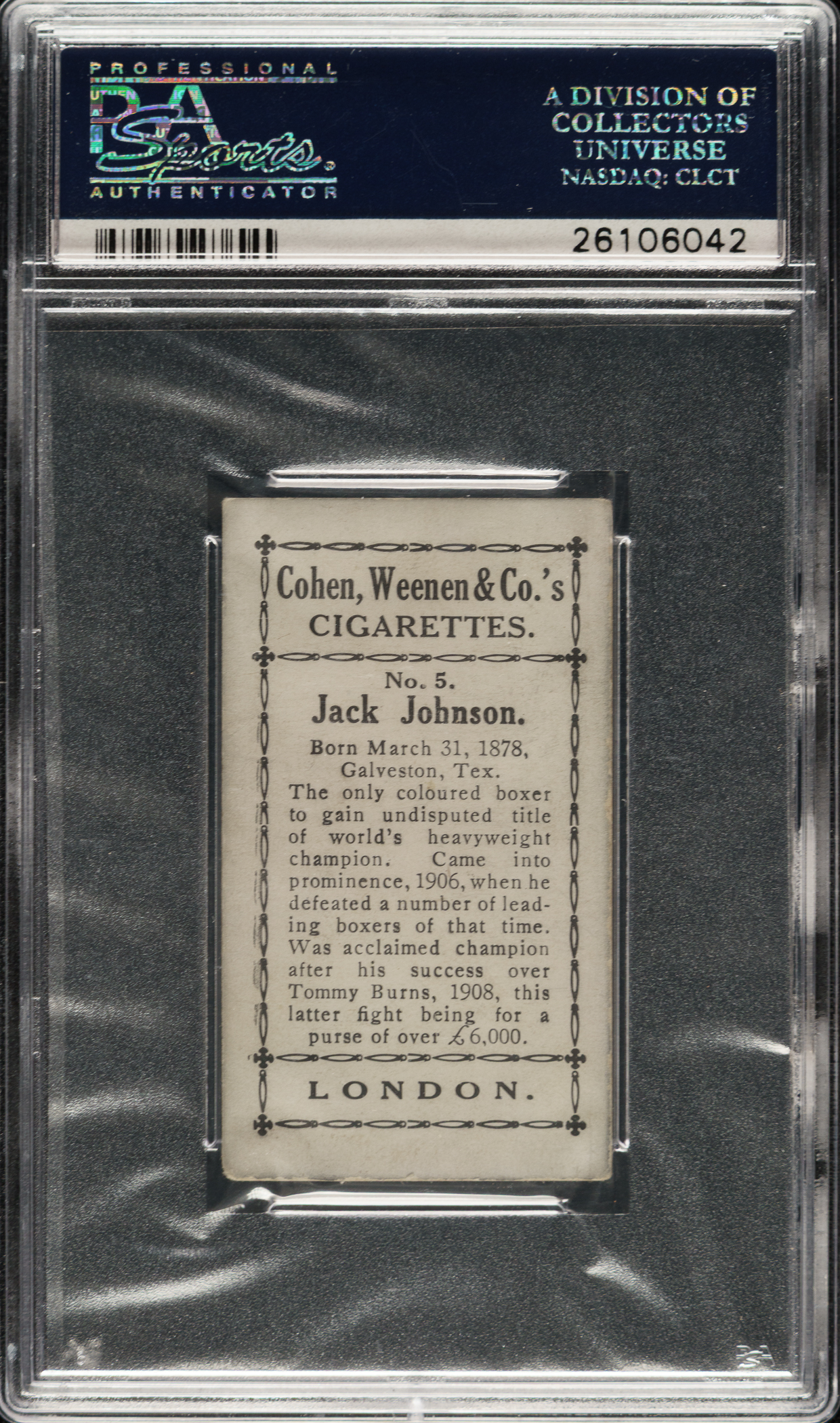 Graded VG+ 3.5 by PSA. Boxing Hall of Famer Jack Johnson.