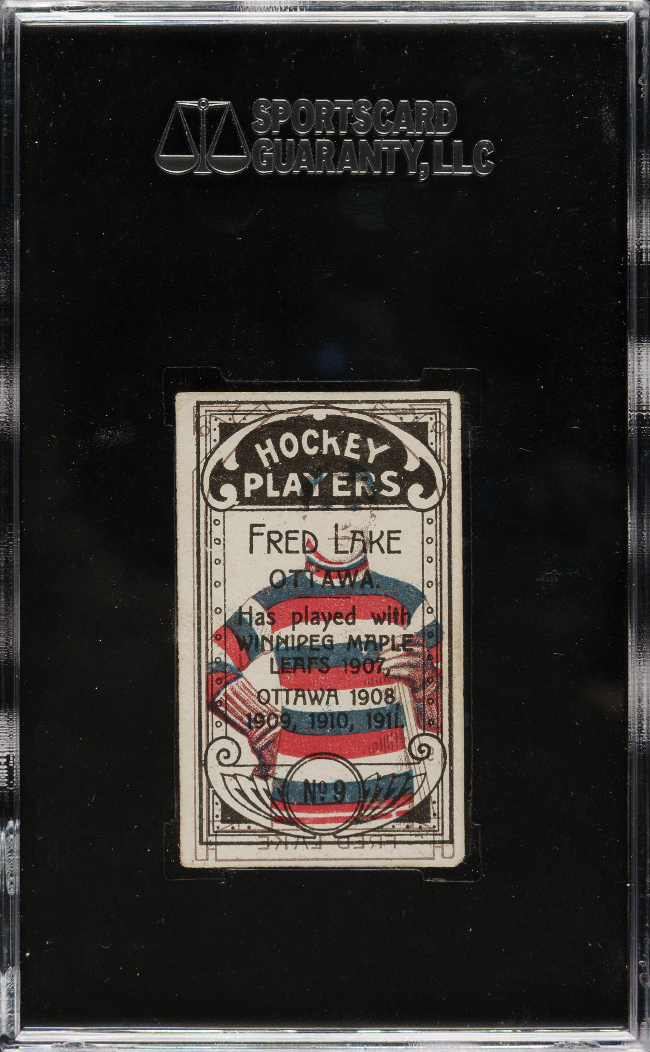Graded GOOD 30 by SGC. Ottawa Senators. The reverse features an extremely rare and possibly unique ghost image of Fred Lake.