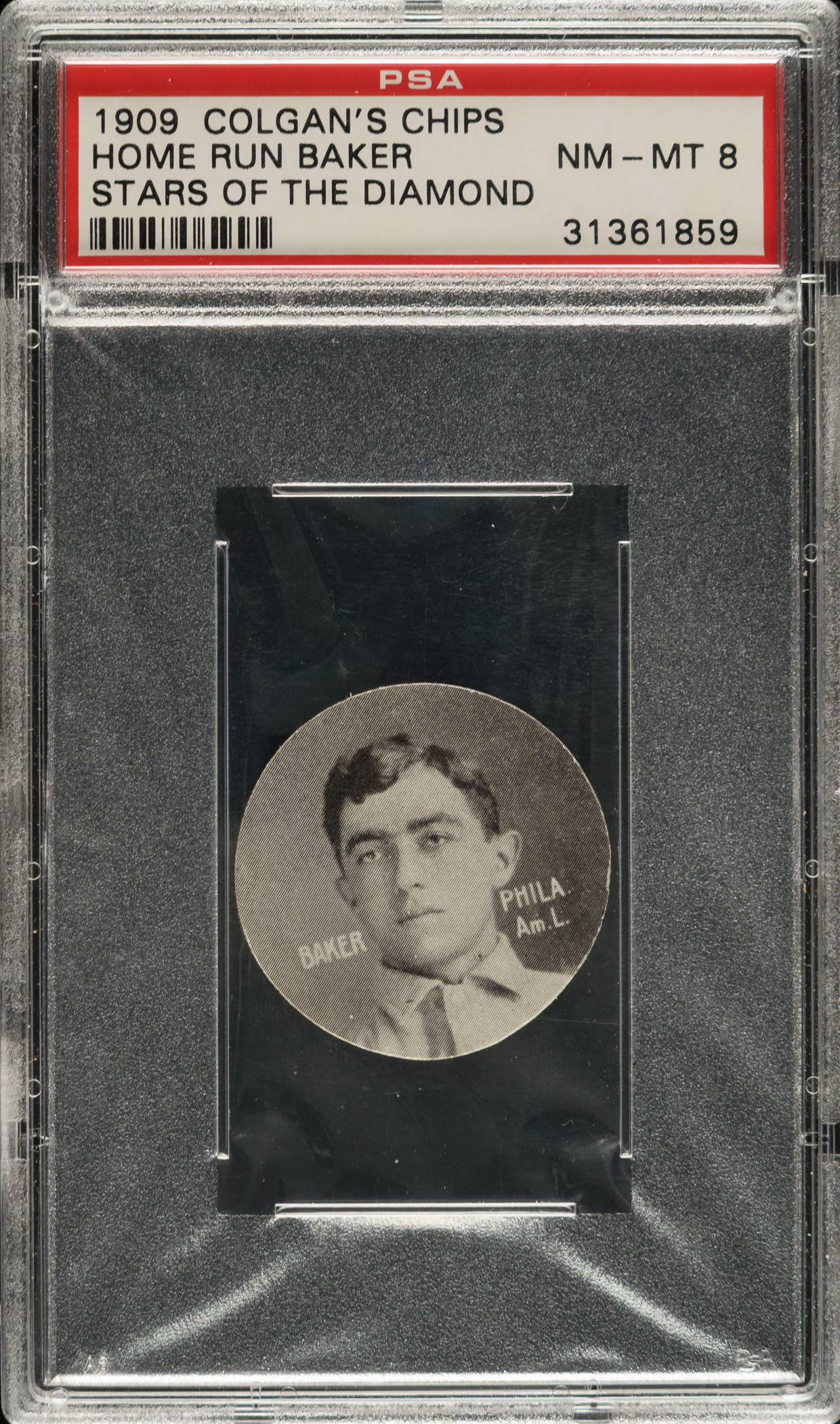 Graded NM-MT 8 by PSA. Philadelphia Athletics Hall of Famer Frank "Home Run" Baker. One of five examples graded at this level by PSA with just one higher.