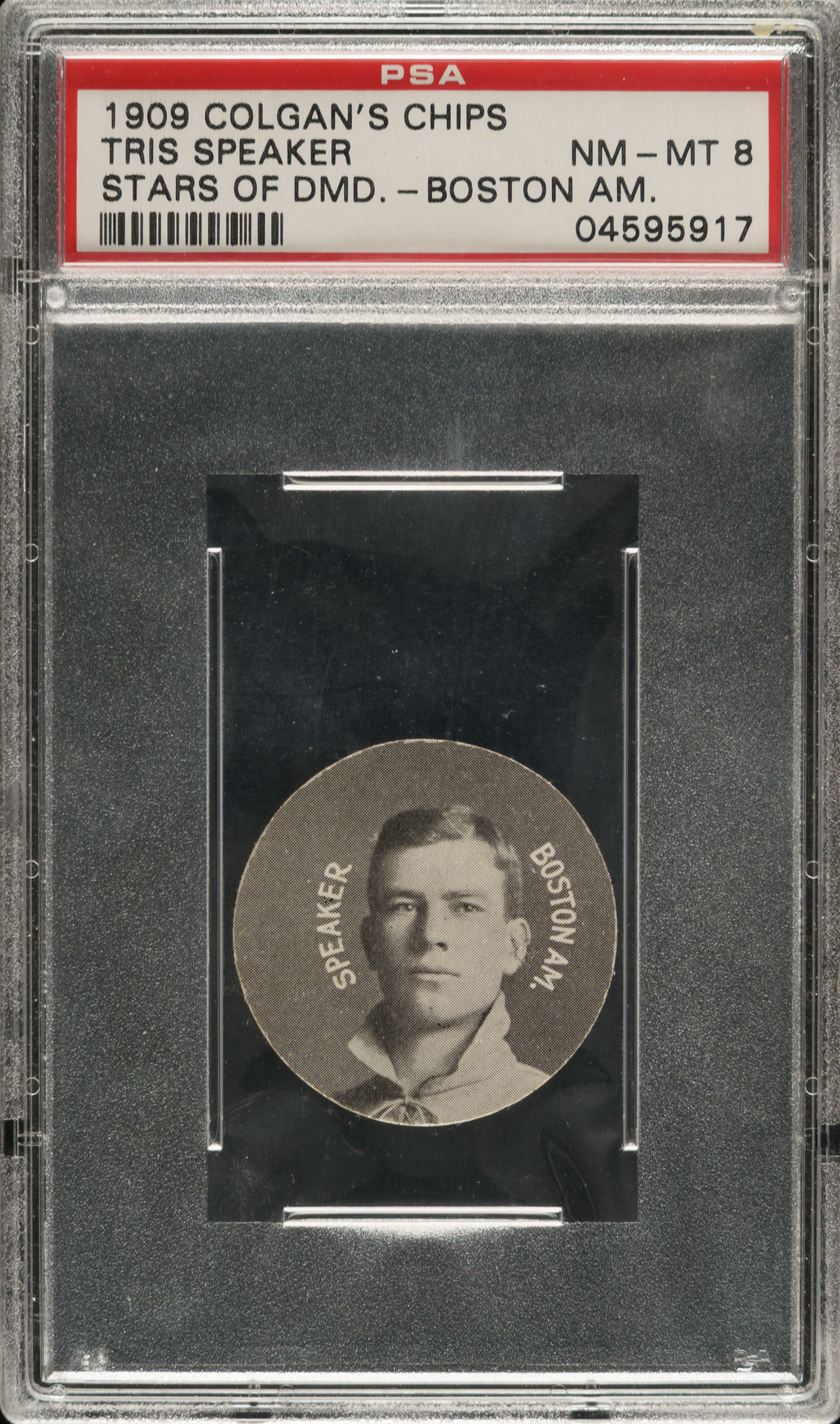 Graded NM-MT 8 by PSA. Boston Red Sox Hall of Famer Tris Speaker. One of only three examples graded at this level by PSA with none higher!