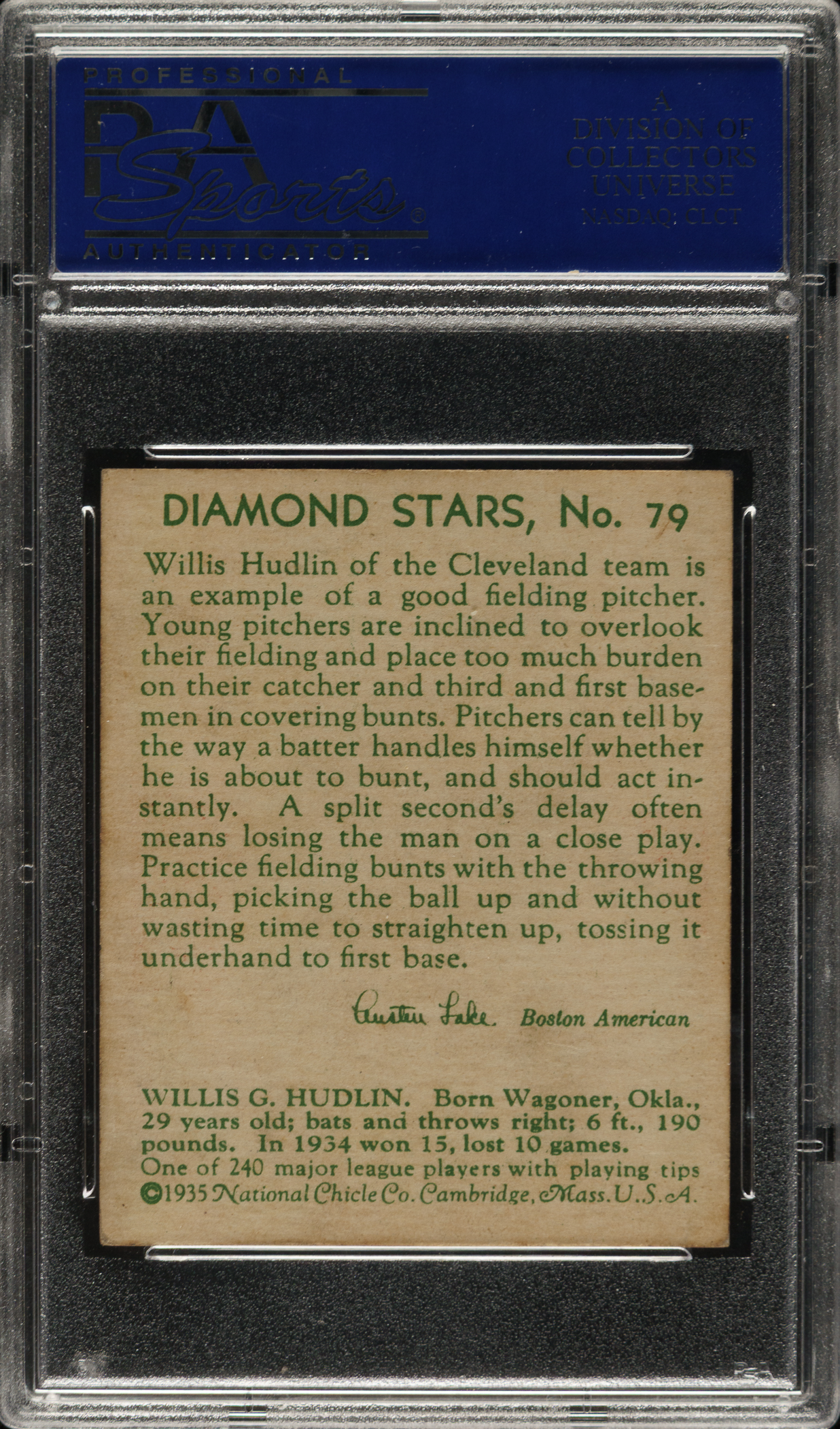 Lot # 2180: 1934-1936 R327 Diamond Stars #79 Willis Hudlin (1935 Green Back) PSA NM 7