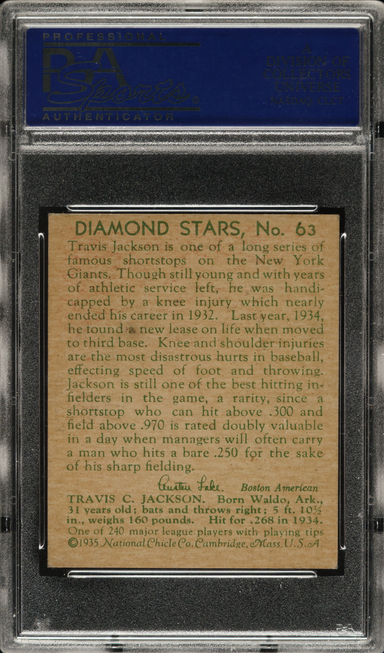 Graded EX-MT 6 by PSA. New York Giants Hall of Famer Travis Jackson.