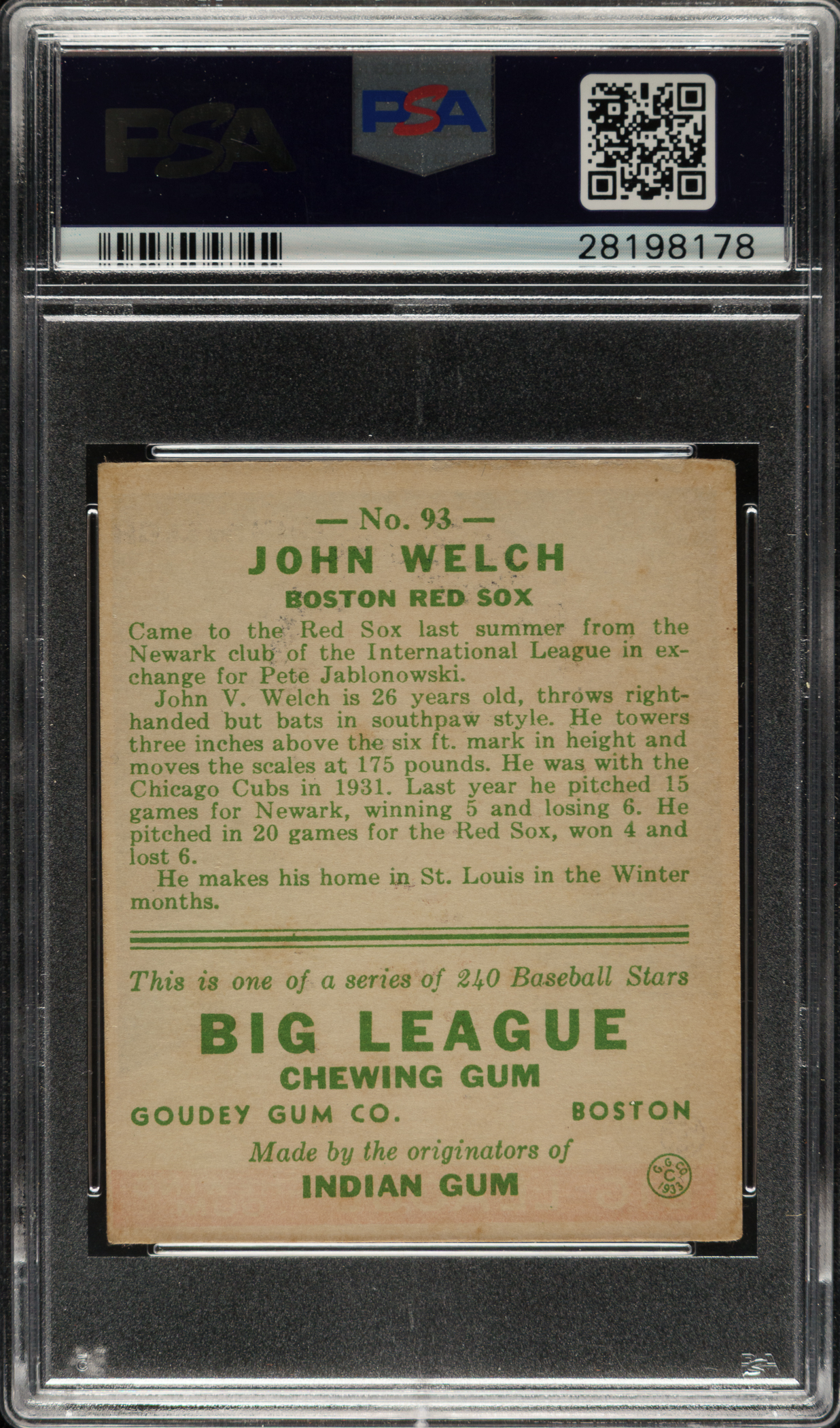 Graded EX 5 by PSA. Boston Red Sox.