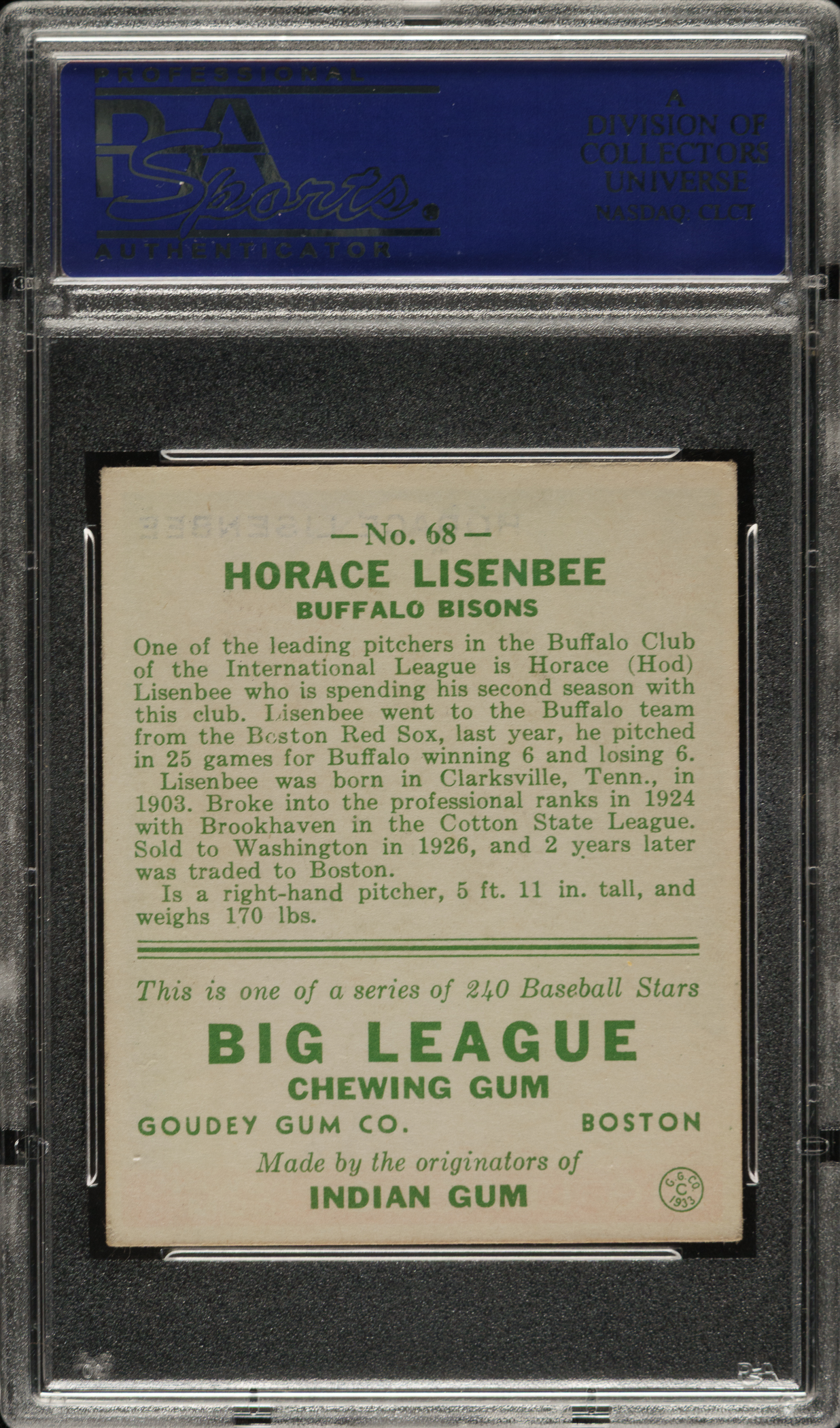 Lot # 2103: 1933 R319 Goudey #68 Horace Lisenbee PSA EX 5