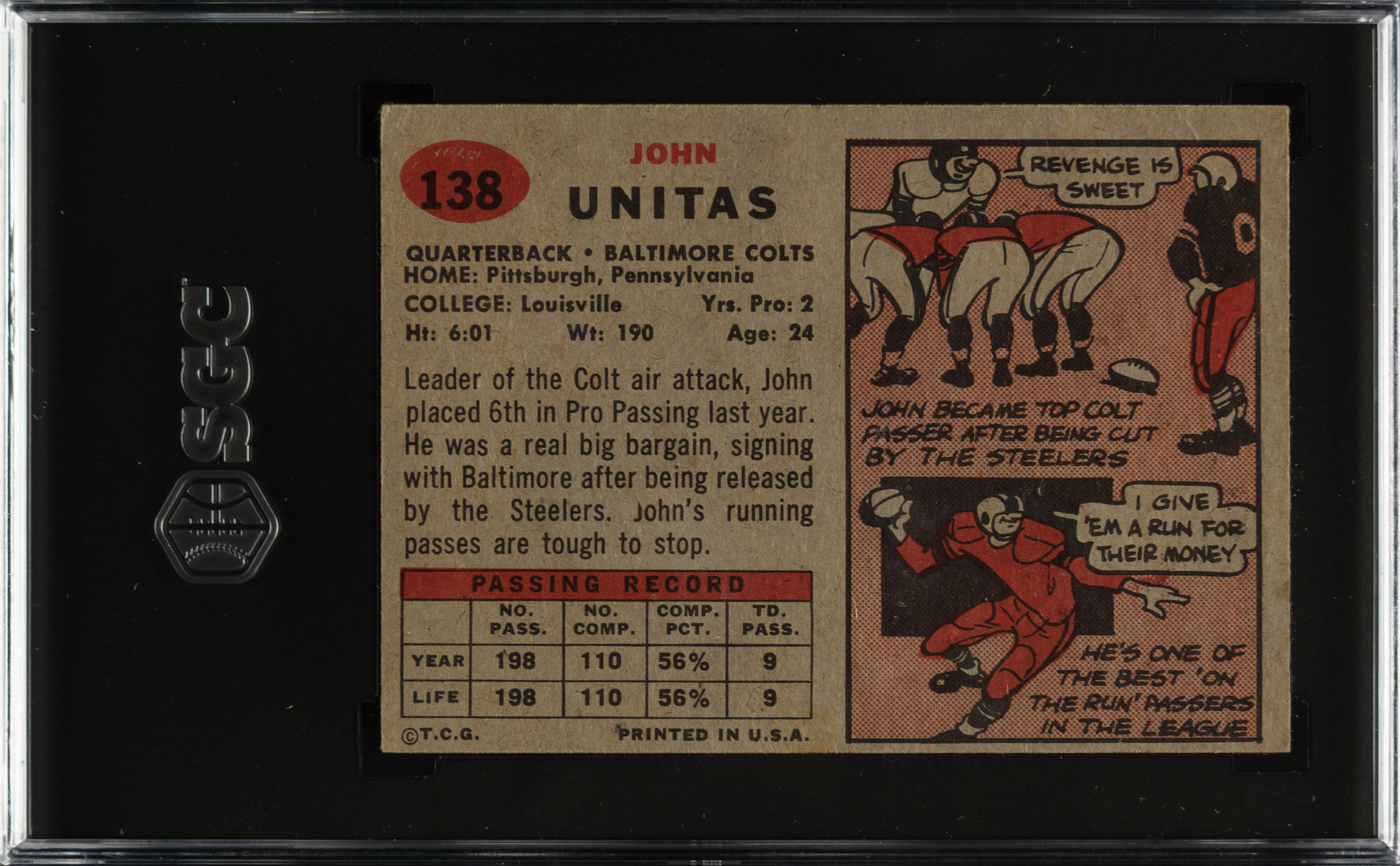 Graded VG 3 by SGC. Baltimore Colts Hall of Famer Johnny Unitas.