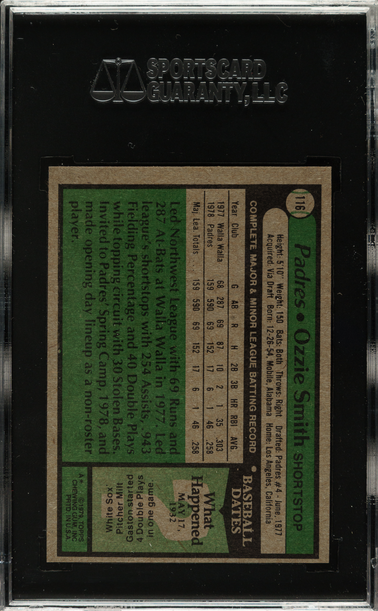 Graded EX/NM 80 by SGC. San Diego Padres Hall of Famer Ozzie Smith.