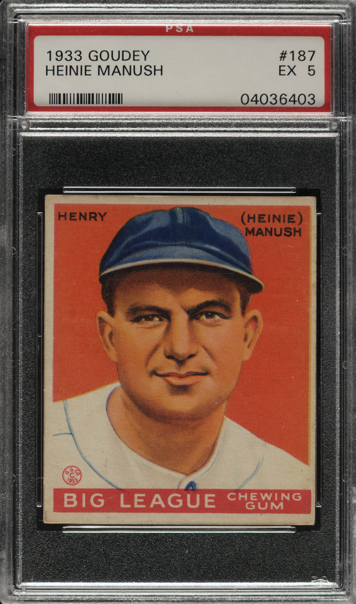 Graded EX 5 by PSA. Washington Senators Hall of Famer Heinie Manush.