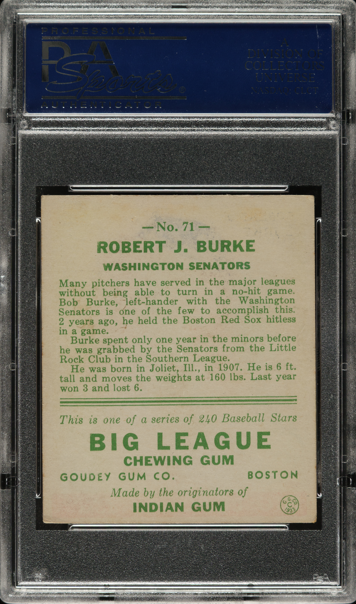 Lot # 2107: 1933 R319 Goudey #71 Robert J. Burke PSA EX 5
