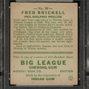Lot # 2087: 1933 R319 Goudey #38 Fred Brickell PSA EX 5