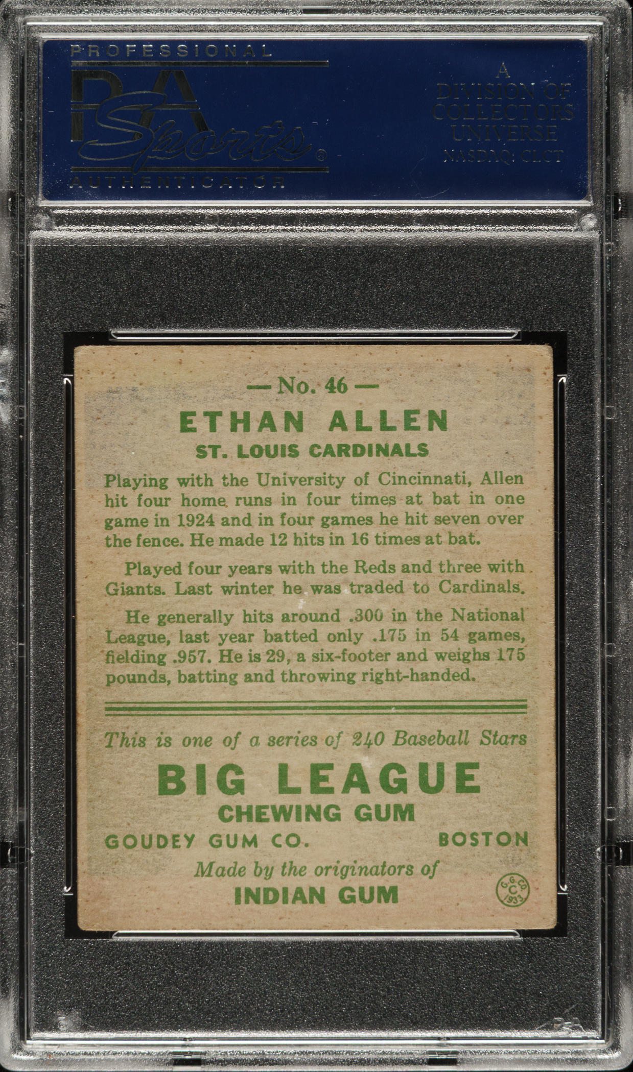 Lot # 2092: 1933 R319 Goudey #46 Ethan Allen PSA VG-EX+ 4.5