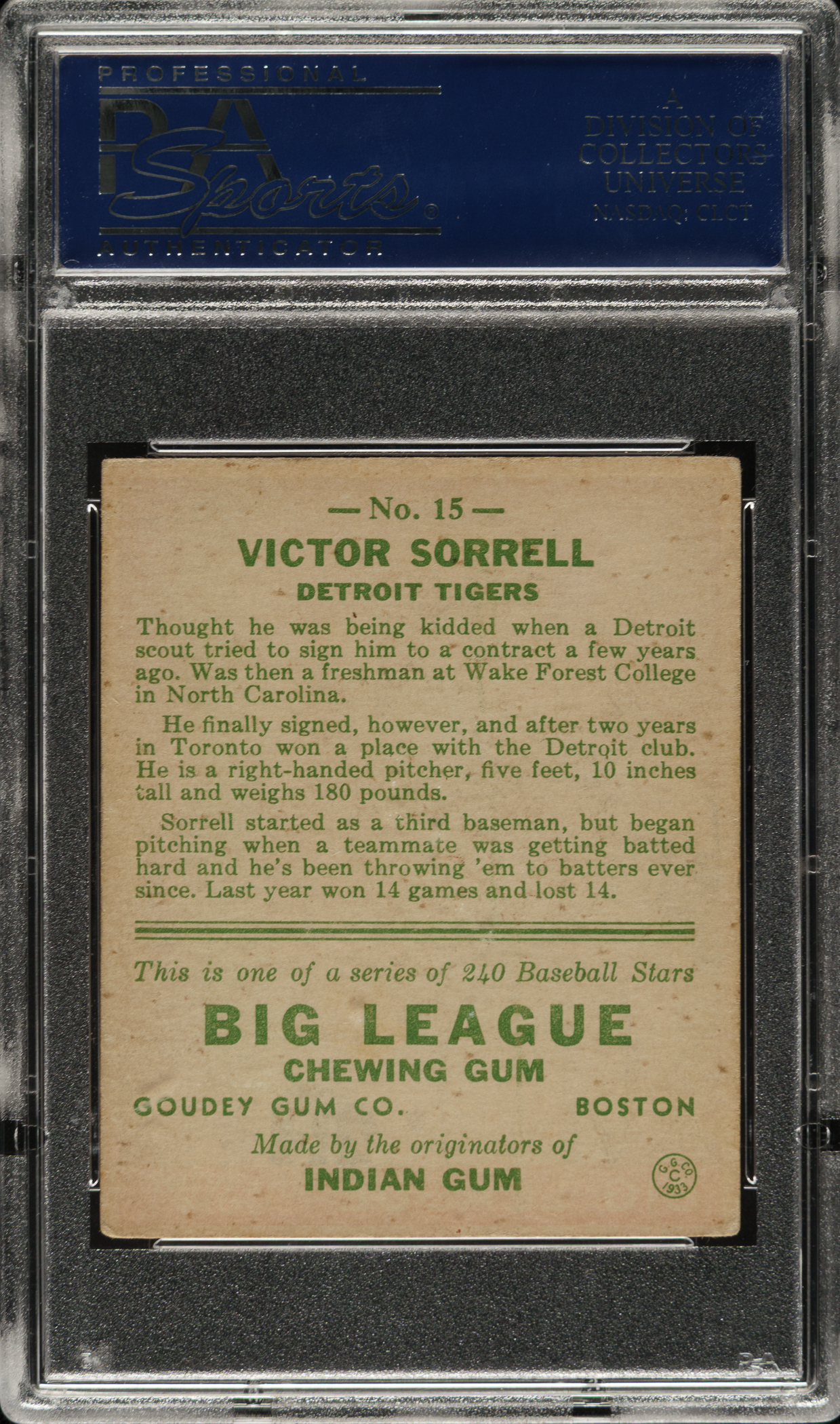 Lot # 2044: 1933 R319 Goudey #15 Victor Sorrell PSA VG-EX+ 4.5