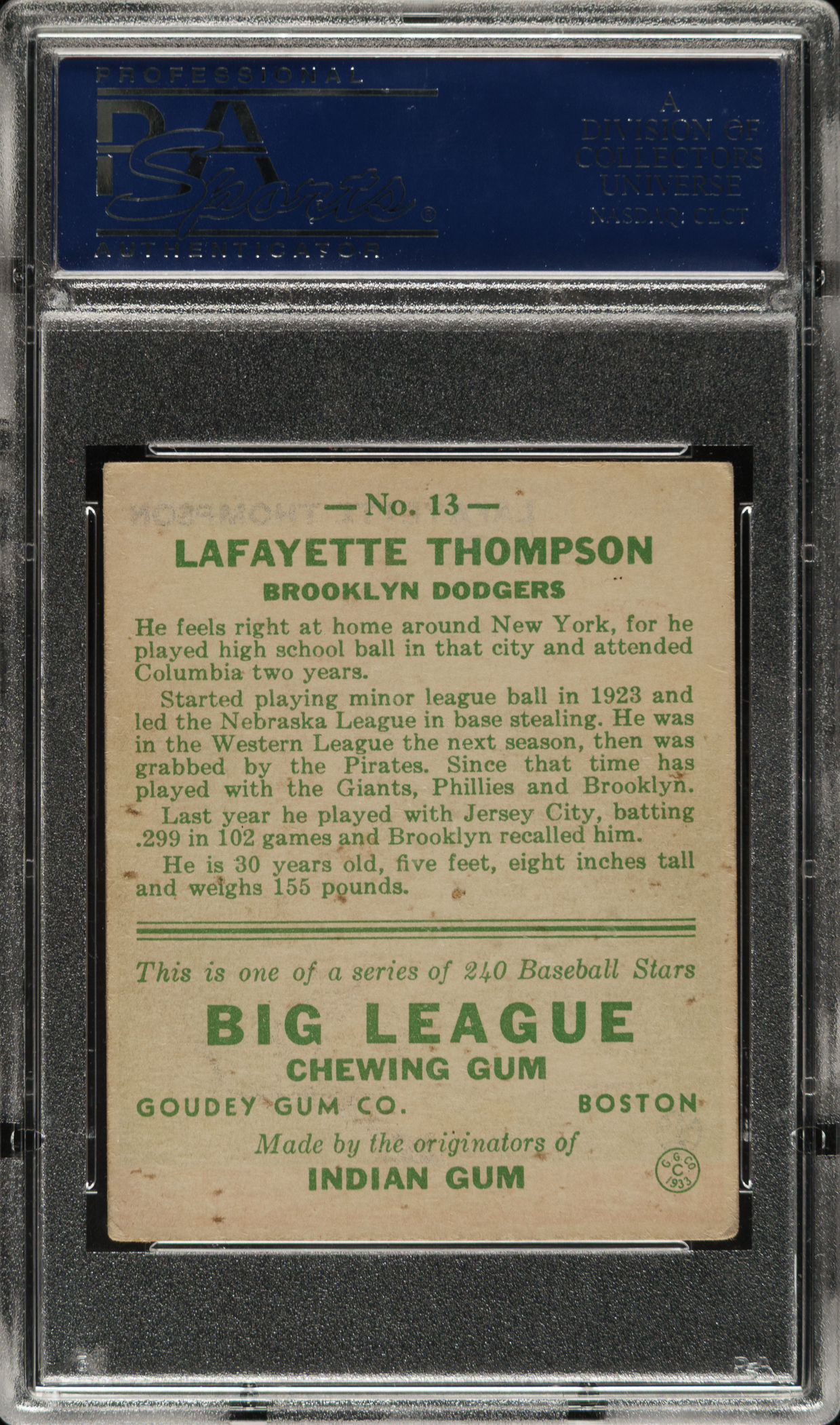 Lot # 2037: 1933 R319 Goudey #13 Lafayette Thompson PSA VG-EX 4