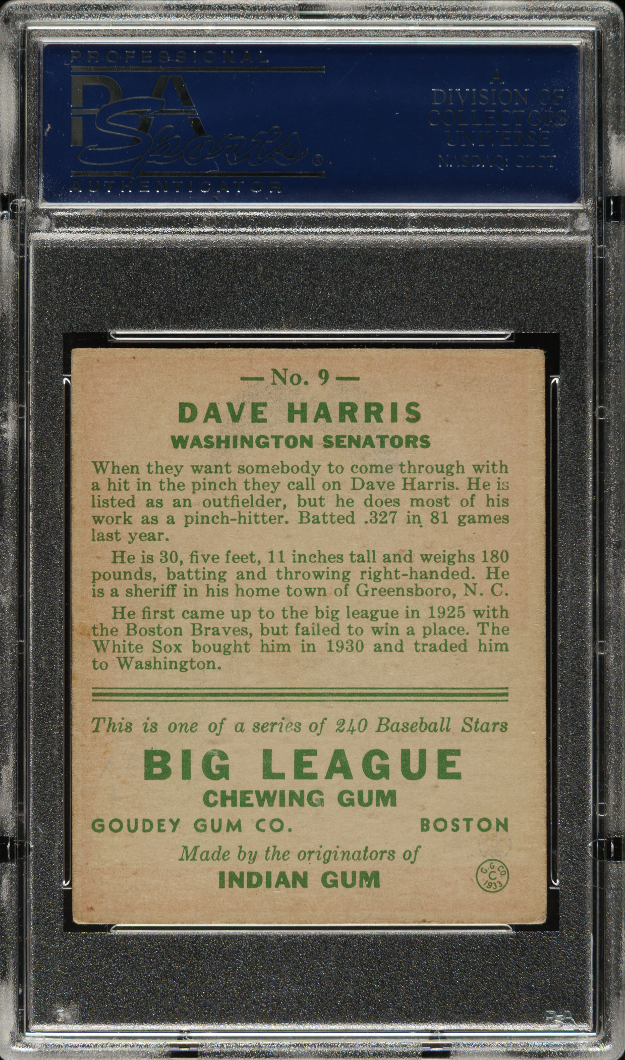 Lot # 2112: 1933 R319 Goudey #9 Dave Harris PSA VG-EX 4