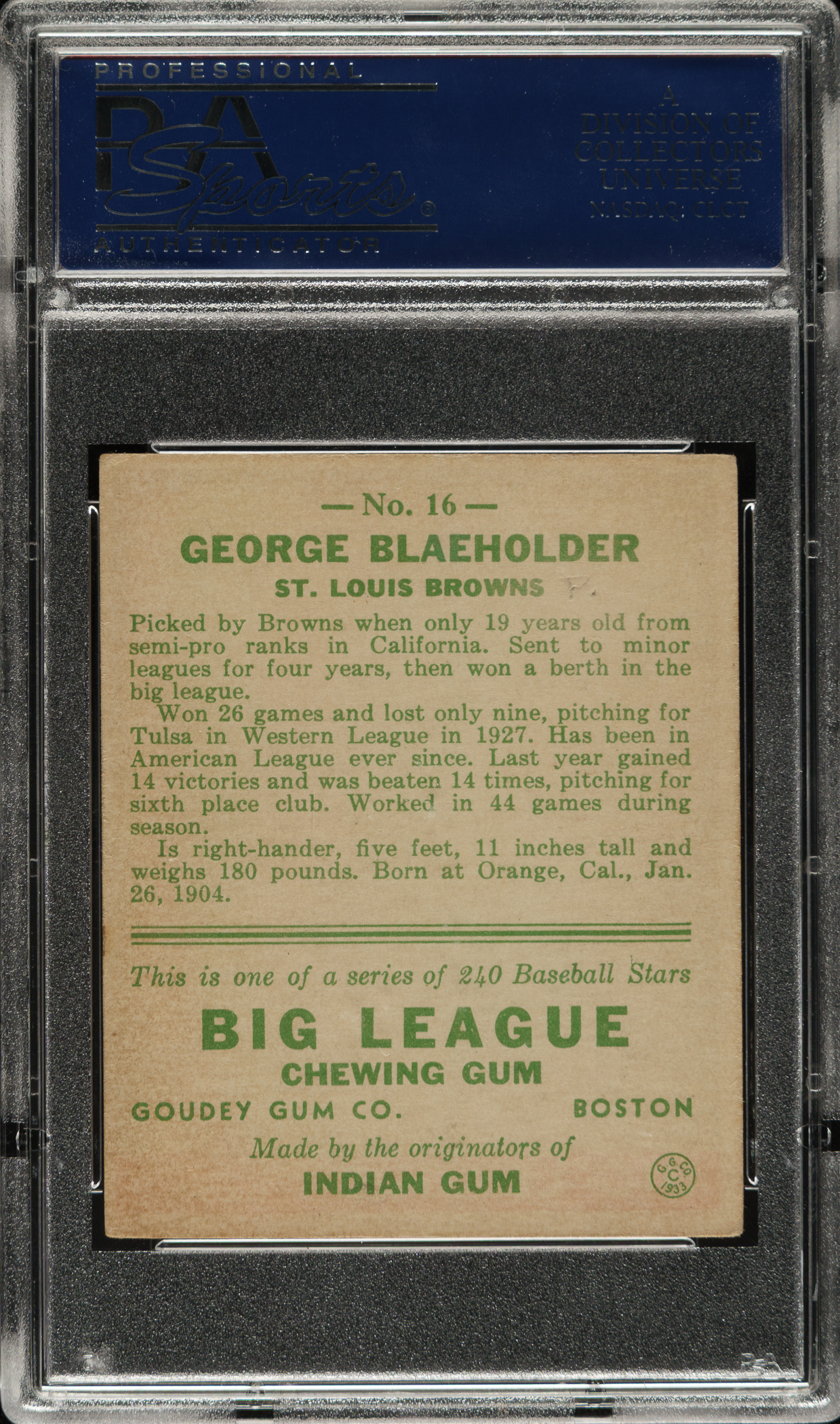 Lot # 2046: 1933 R319 Goudey #16 George Blaeholder PSA VG-EX 4