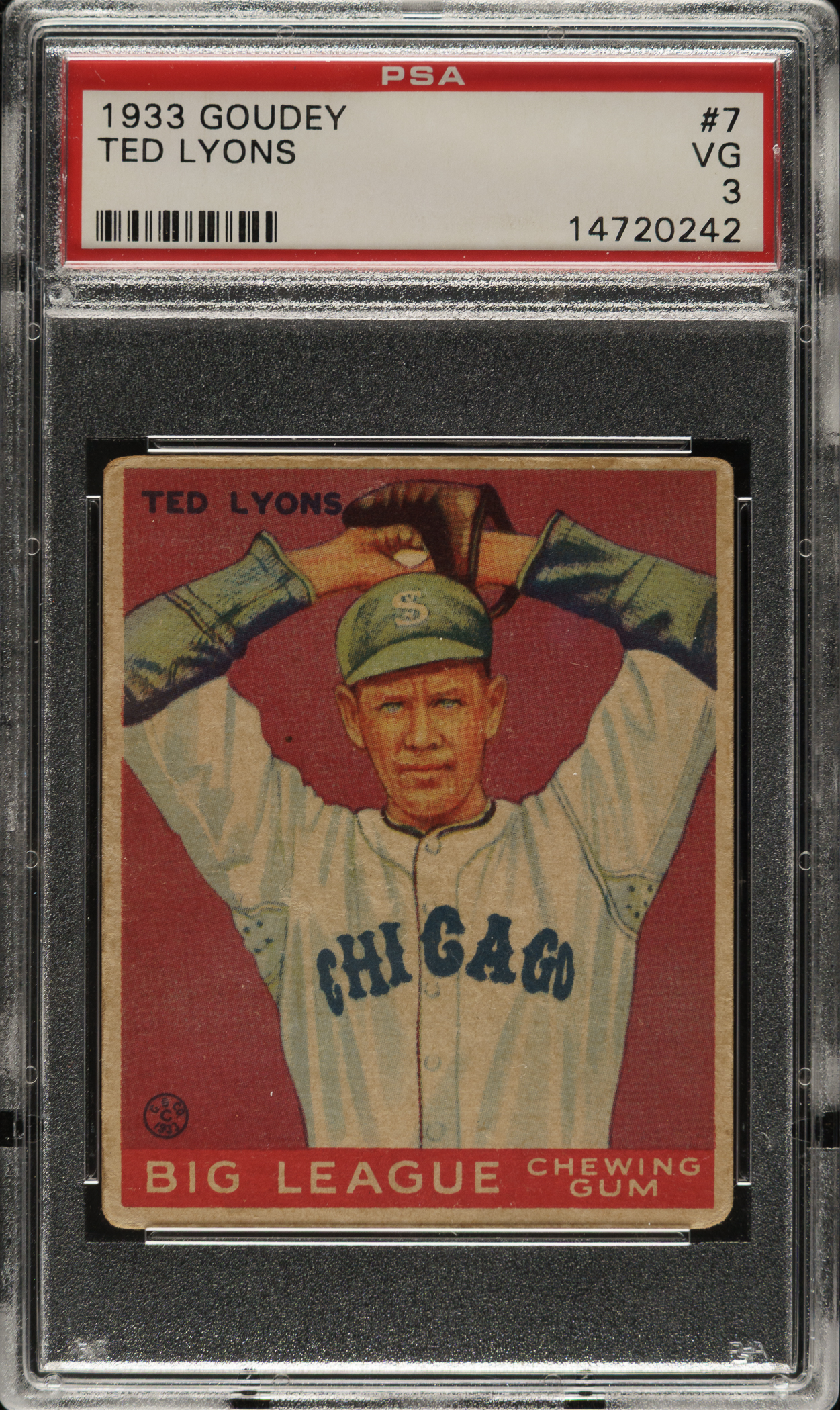 Graded VG 3 by PSA. Chicago White Sox Hall of Famer Ted Lyons.