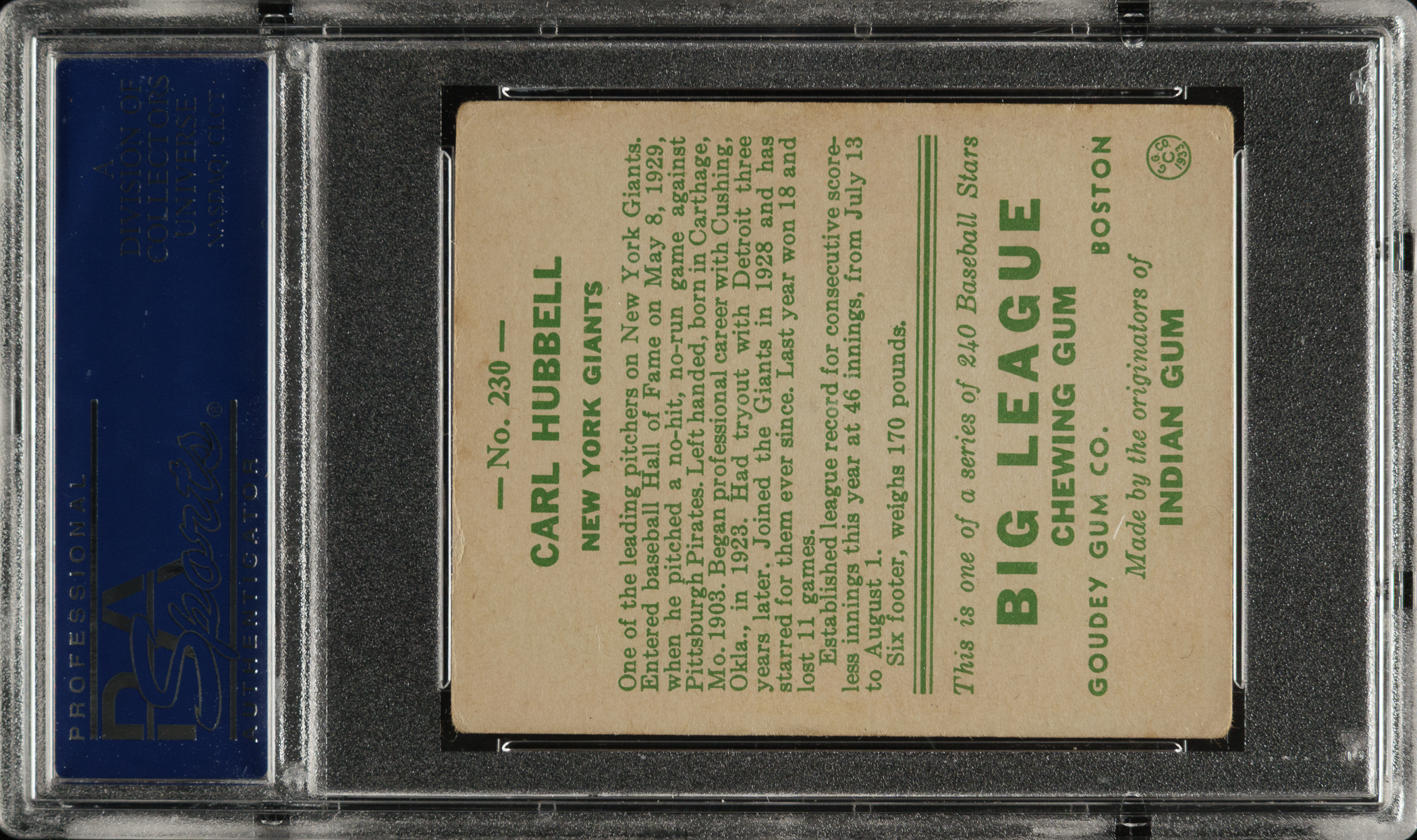 Graded VG 3 by PSA. New York Giants Hall of Famer Carl Hubbell.