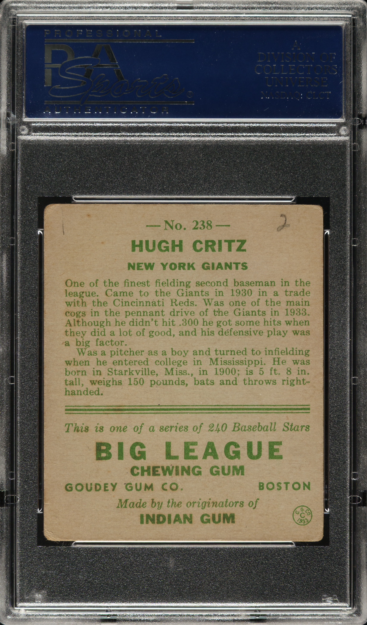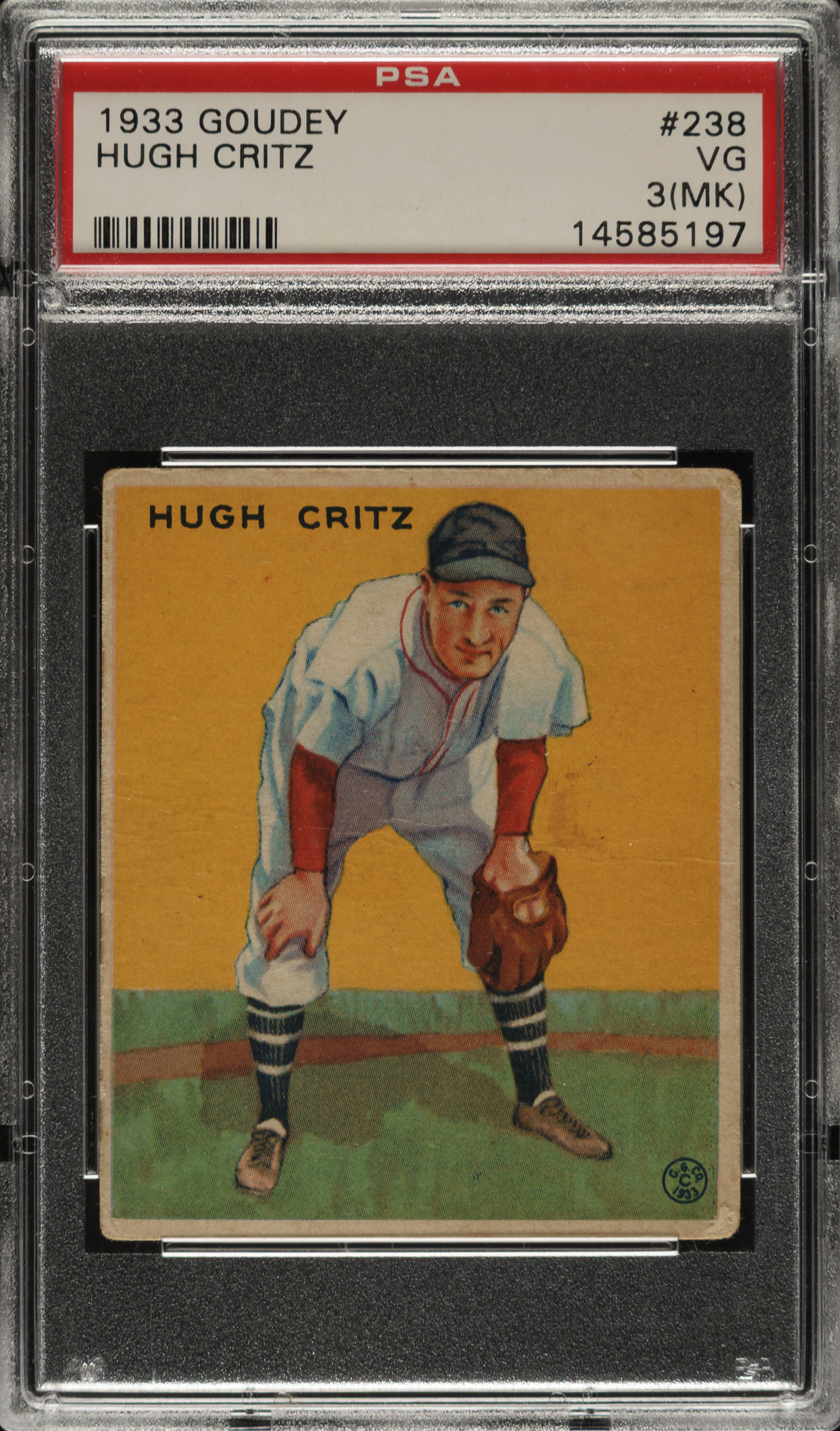 Lot # 2078: 1933 R319 Goudey #238 Hugh Critz PSA VG 3 (MK)