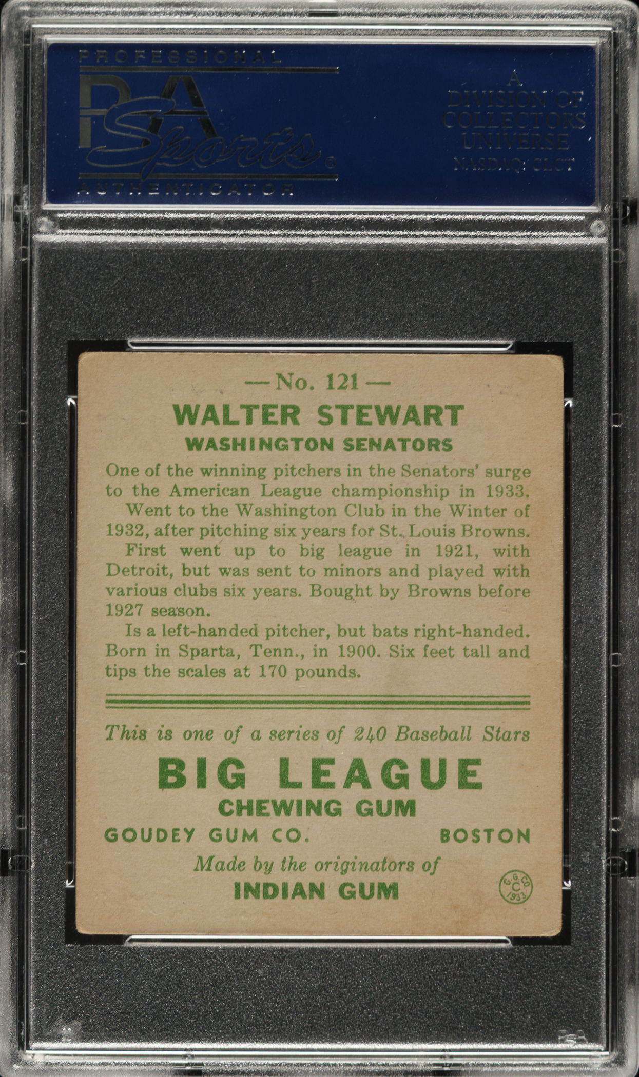 Lot # 2033: 1933 R319 Goudey #121 Walter Stewart PSA VG 3