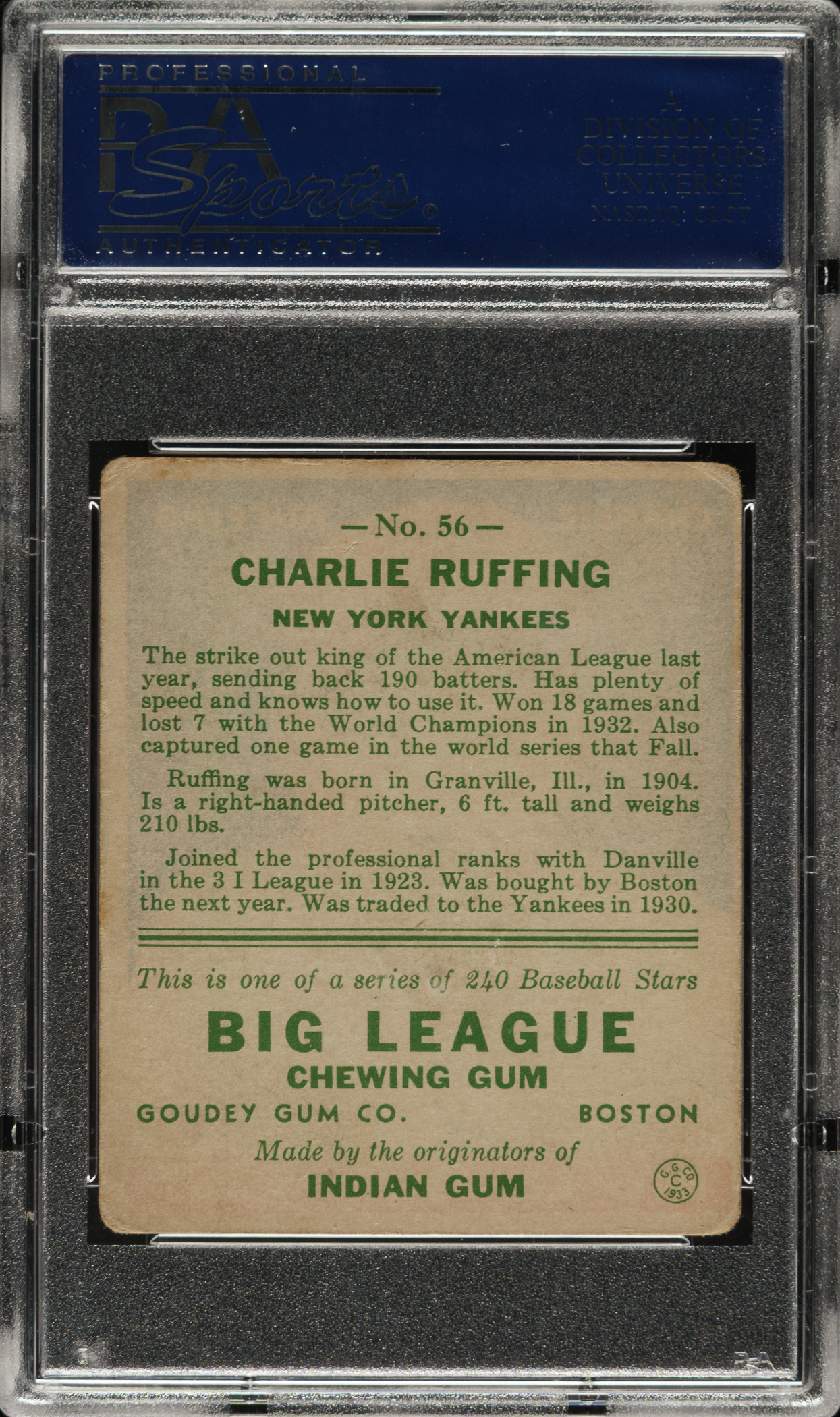 Graded GOOD 2 by PSA. New York Yankees Hall of Famer Red Ruffing.
