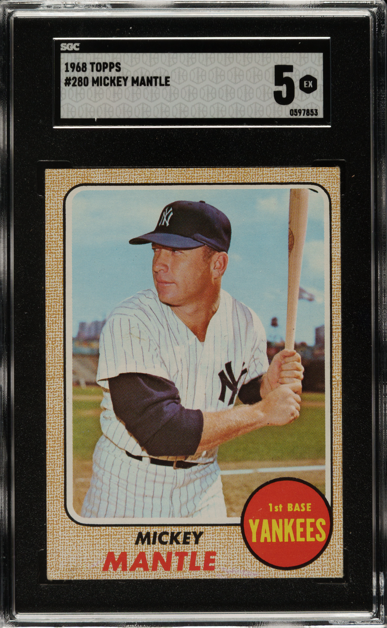 Lot # 3116: 1968 Topps #280 Mickey Mantle SGC EX 5