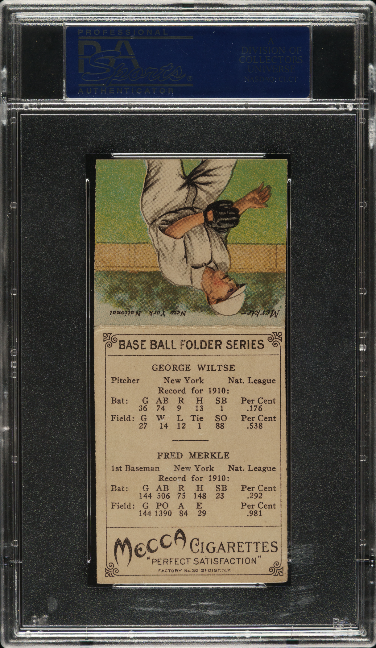 Lot # 1587: 1911 T201 Mecca Double Folder Wiltse/Merkle PSA EX 5