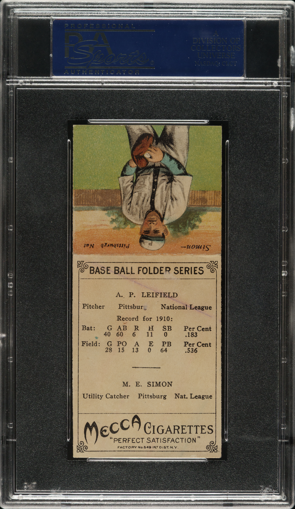 Lot # 1567: 1911 T201 Mecca Double Folder Leifield/Simon PSA VG-EX 4