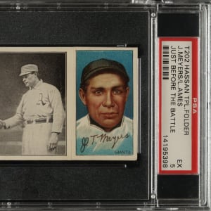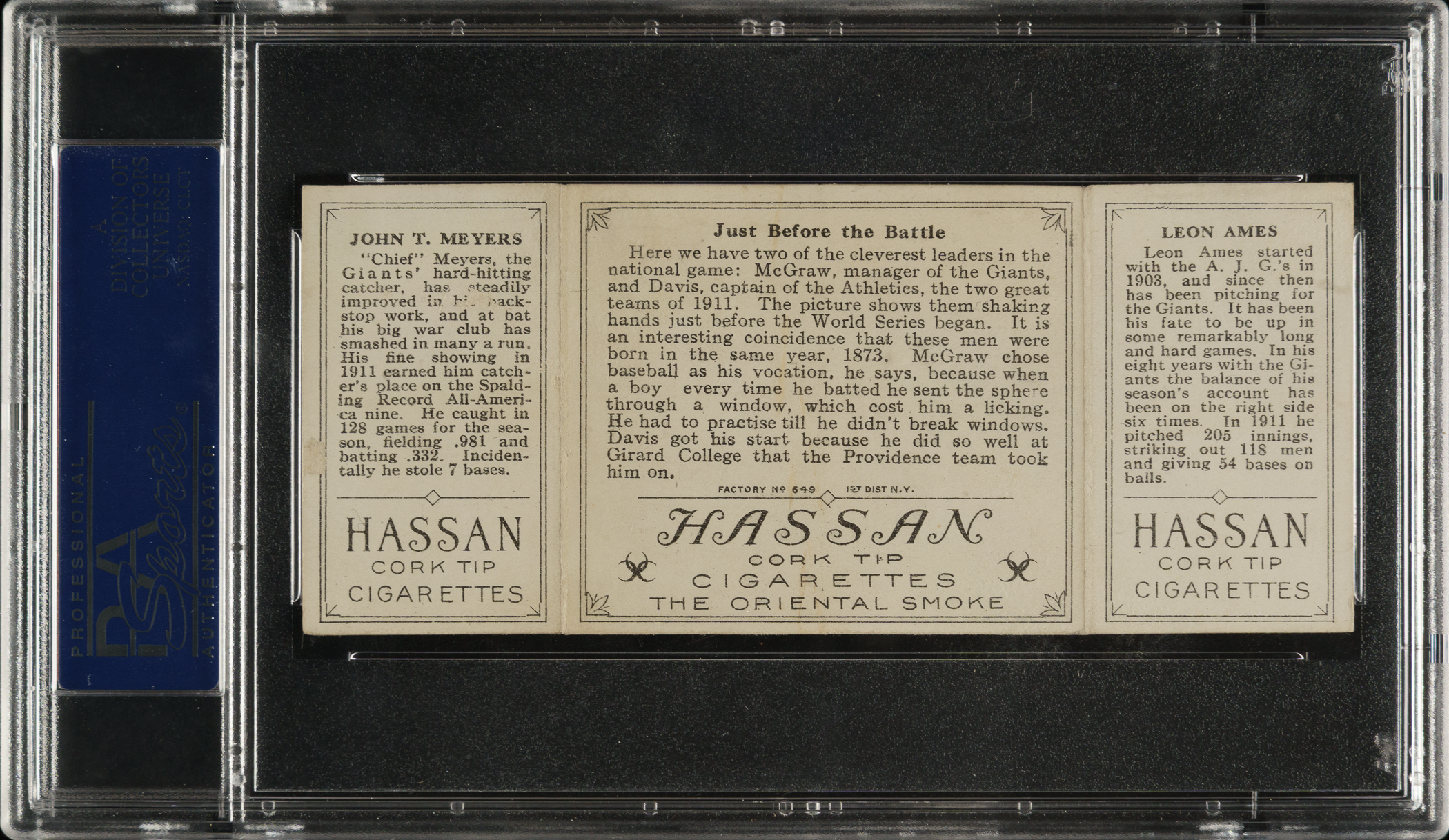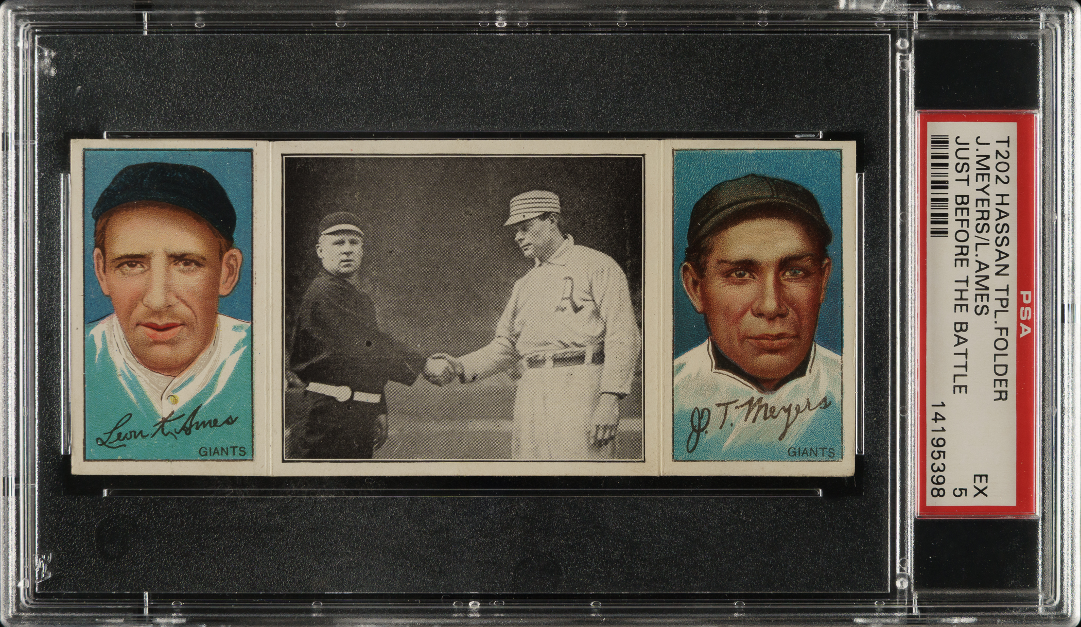 Lot # 1738: 1912 T202 Hassan Triple Folder "Just Before the Battle" Ames/Meyers PSA EX 5