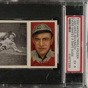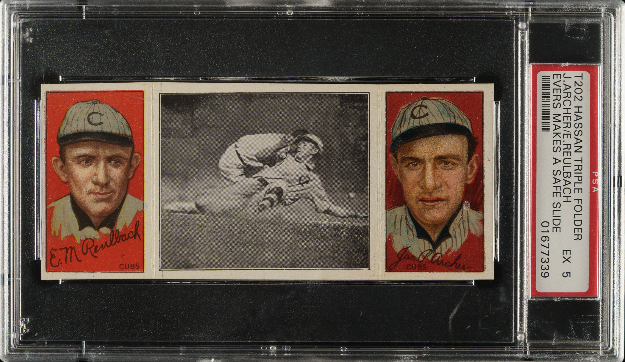 Lot # 1710: 1912 T202 Hassan Triple Folder "Evers Make A Safe Slide" Archer/Reulbach PSA EX 5