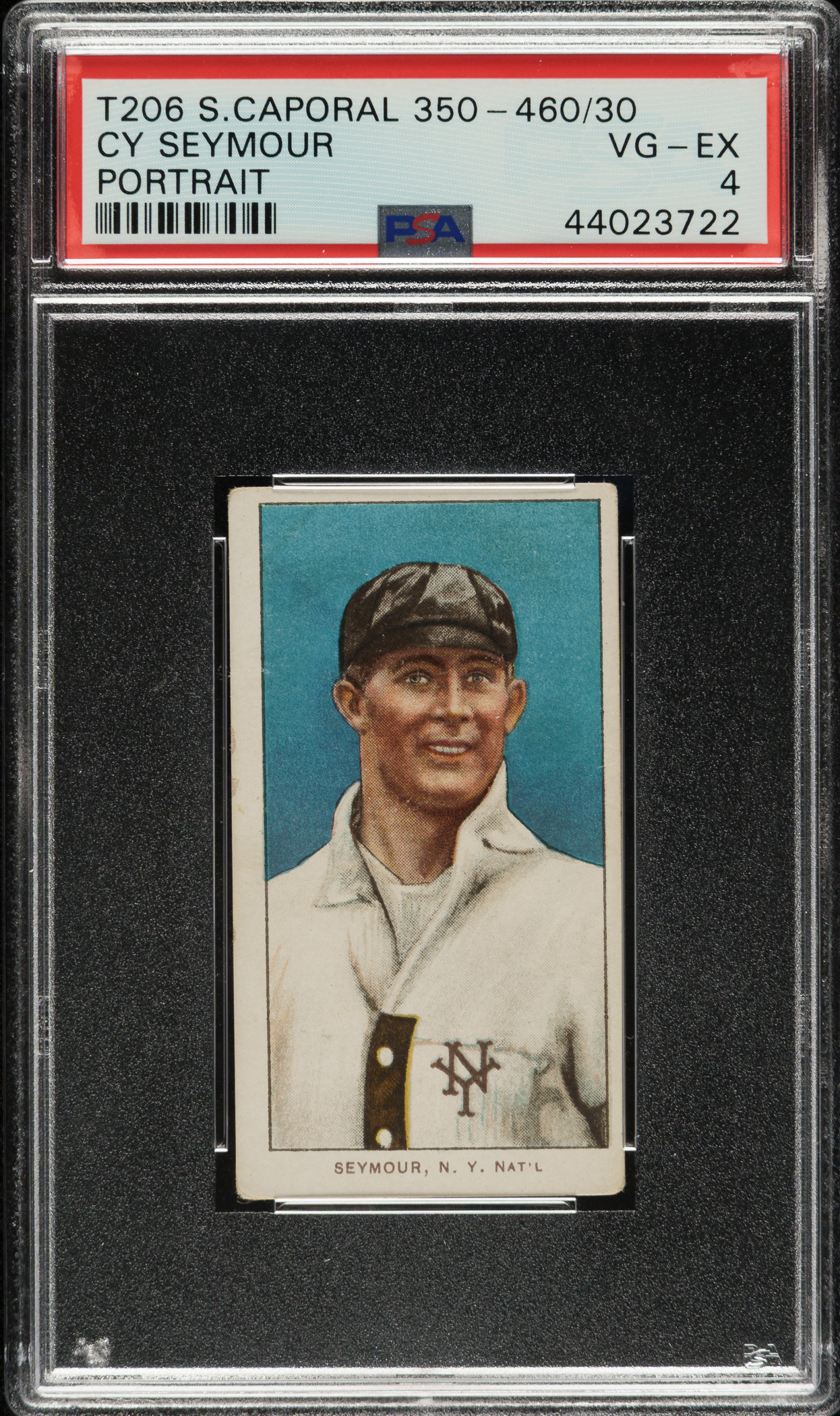 Lot # 1195: 1909-1911 T206 White Border Cy Seymour Portrait PSA VG-EX 4