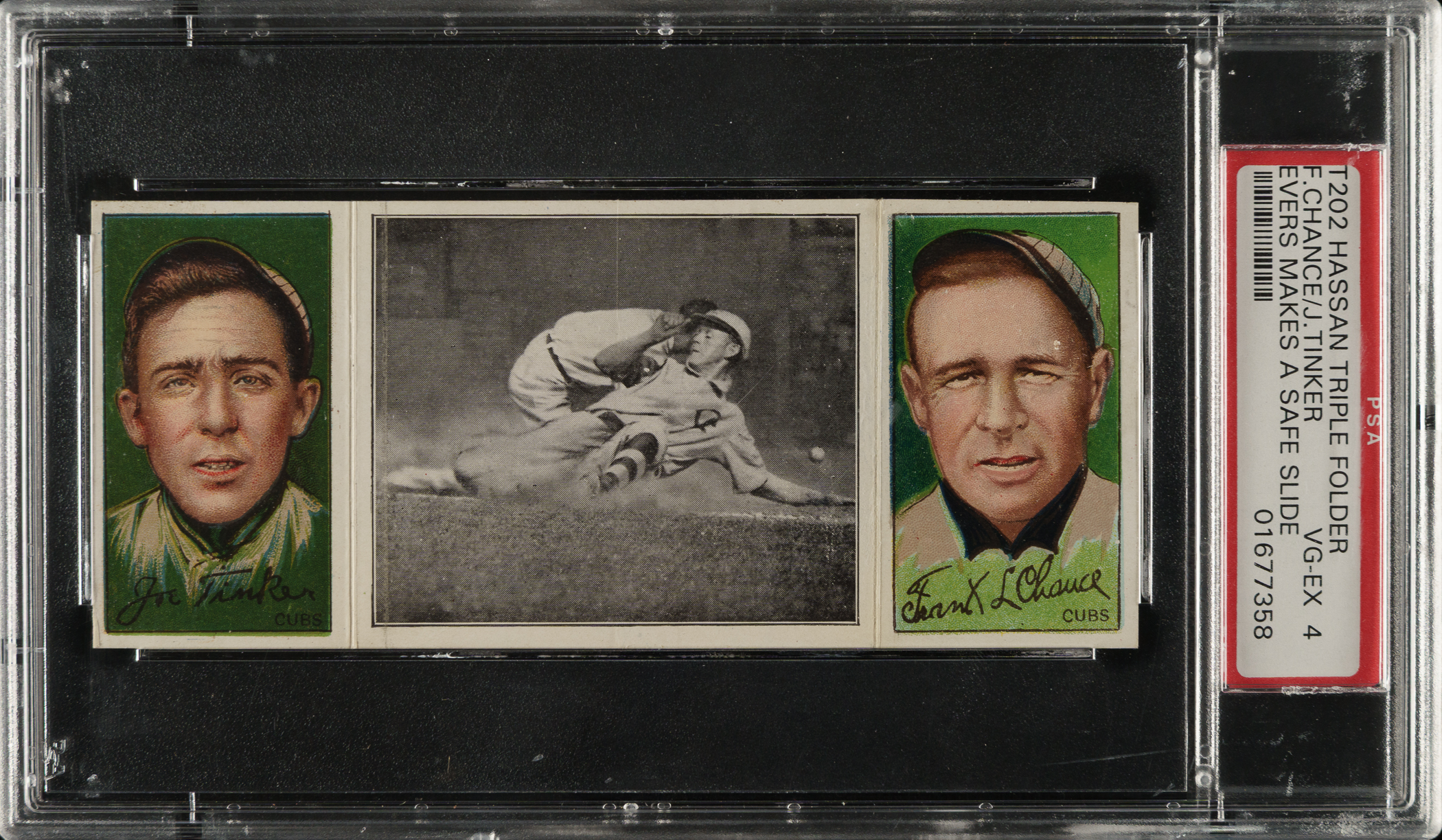 Graded VG-EX 4 by PSA. Chicago Cubs Hall of Famers Joe Tinker and Frank Chance.