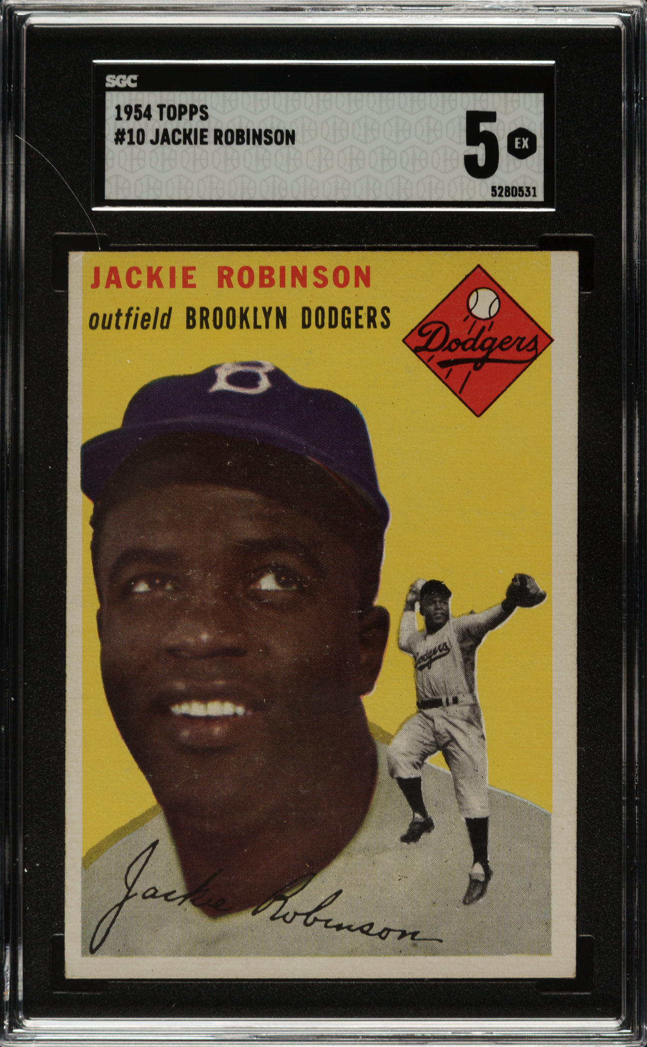 Graded EX 5 by SGC. Brooklyn Dodgers Hall of Famer Jackie Robinson.