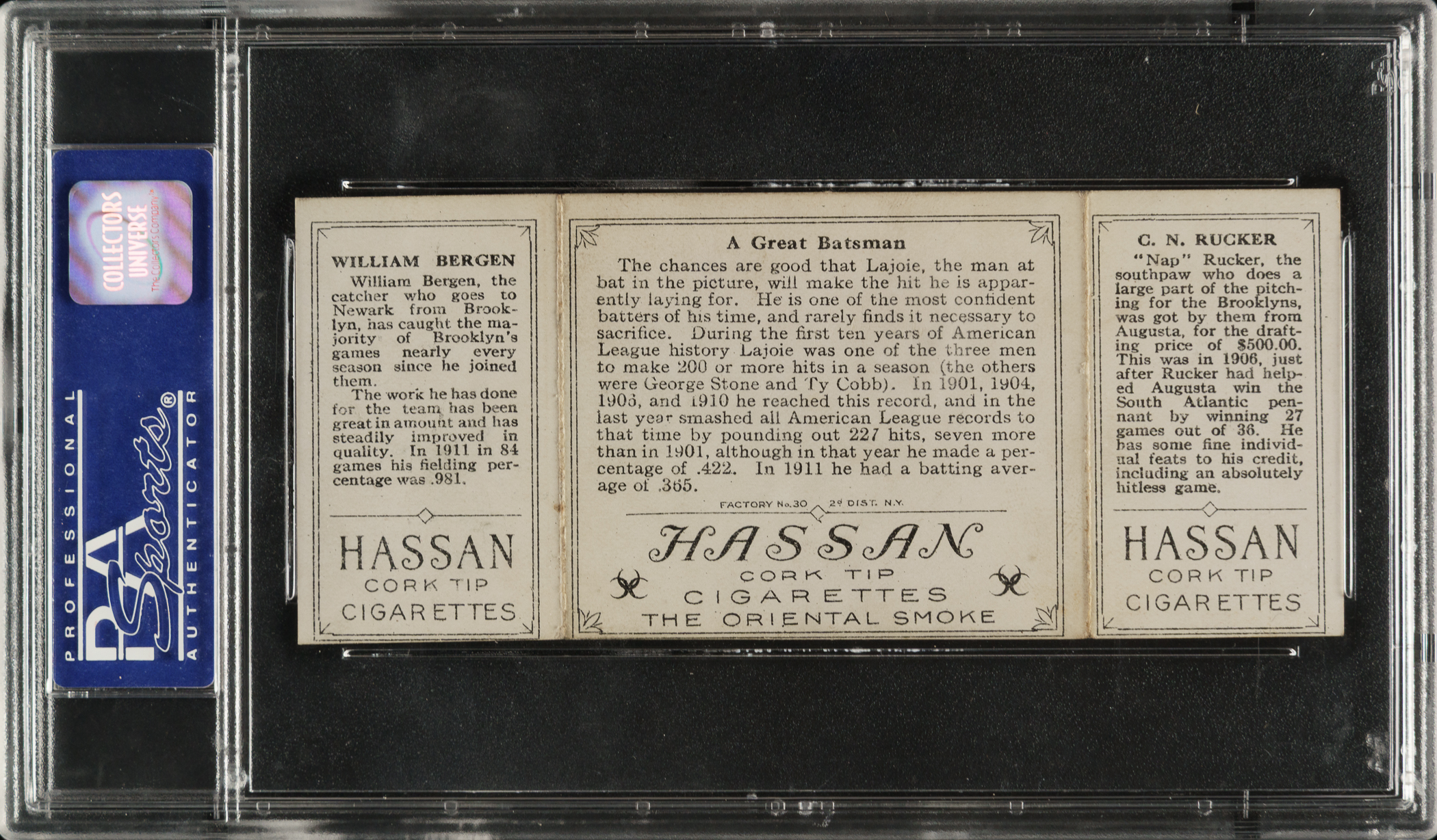 Lot # 1689: 1912 T202 Hassan Triple Folder "A Great Batsman" Rucker/Bergen PSA EX 5