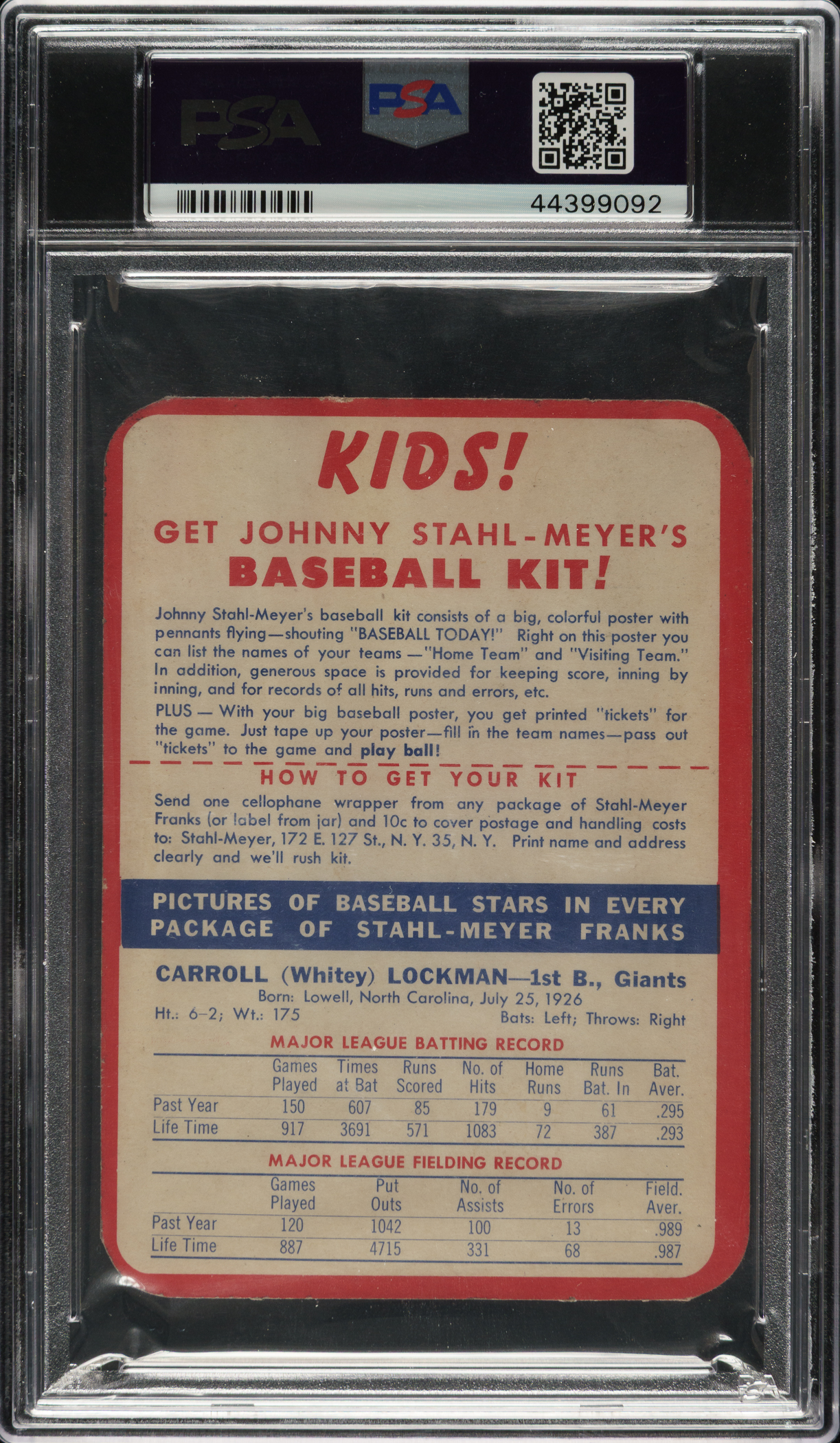Lot # 2657: 1955 Stahl-Meyer Franks Whitey Lockman PSA VG-EX 4