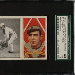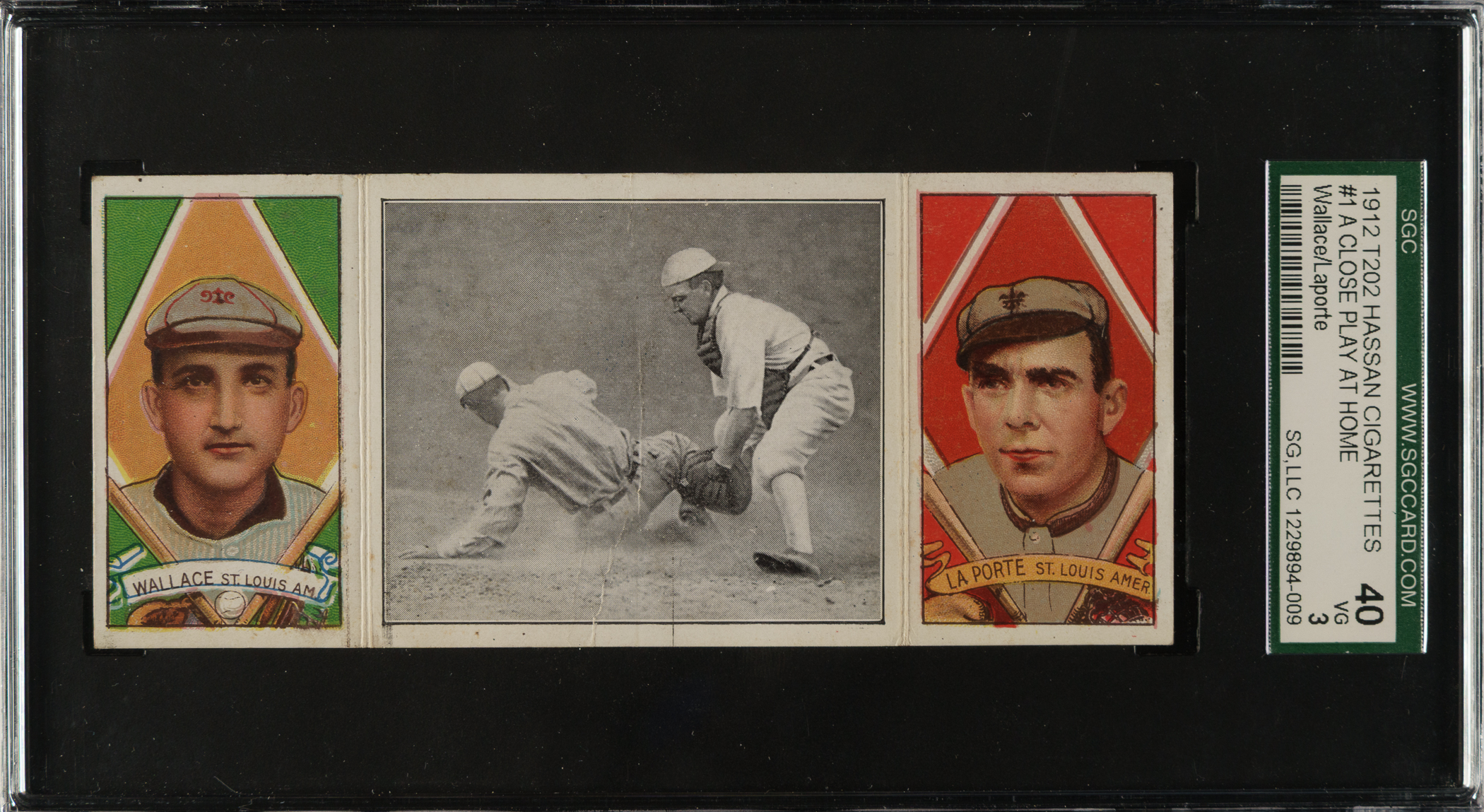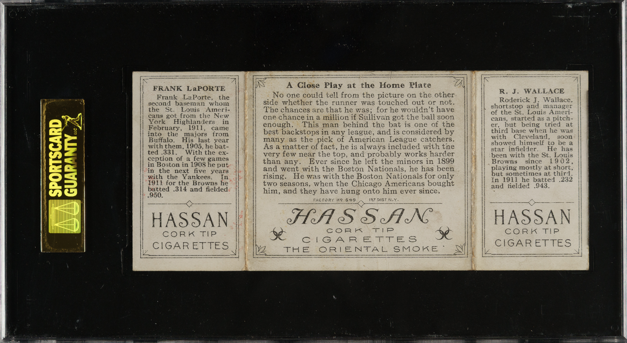 Lot # 1682: 1912 T202 Hassan Triple Folder "A Close Play At Home" Bobby Wallace/LaPorte SGC VG 40
